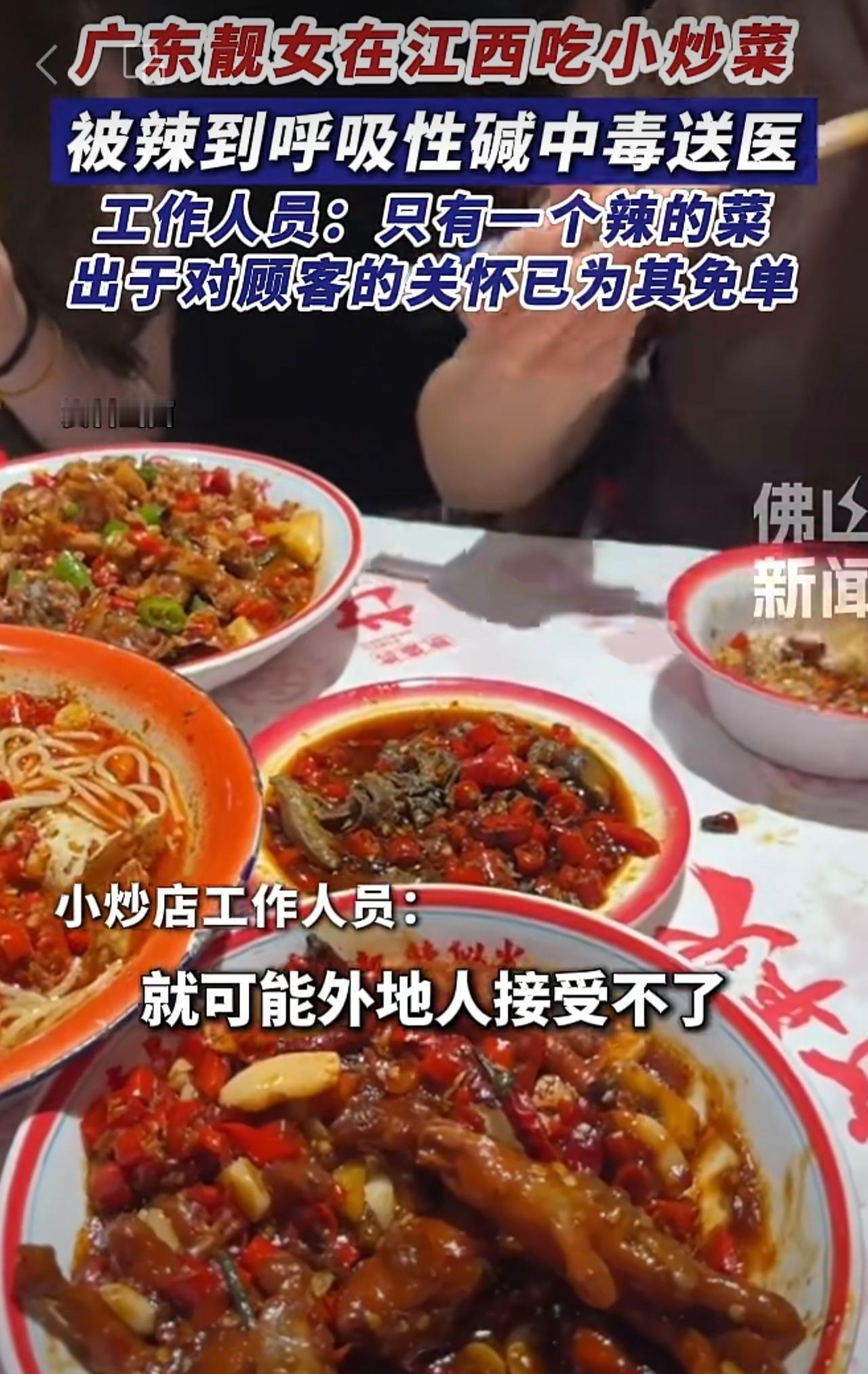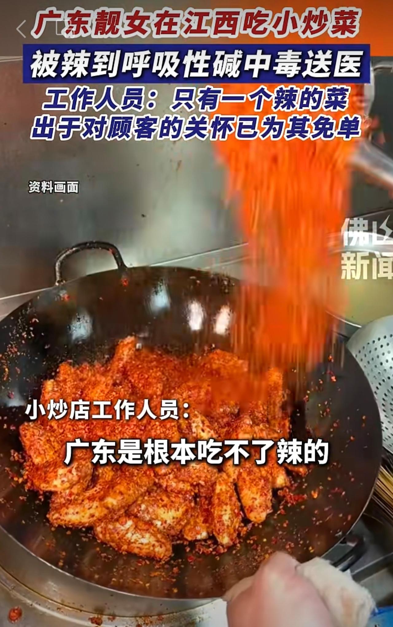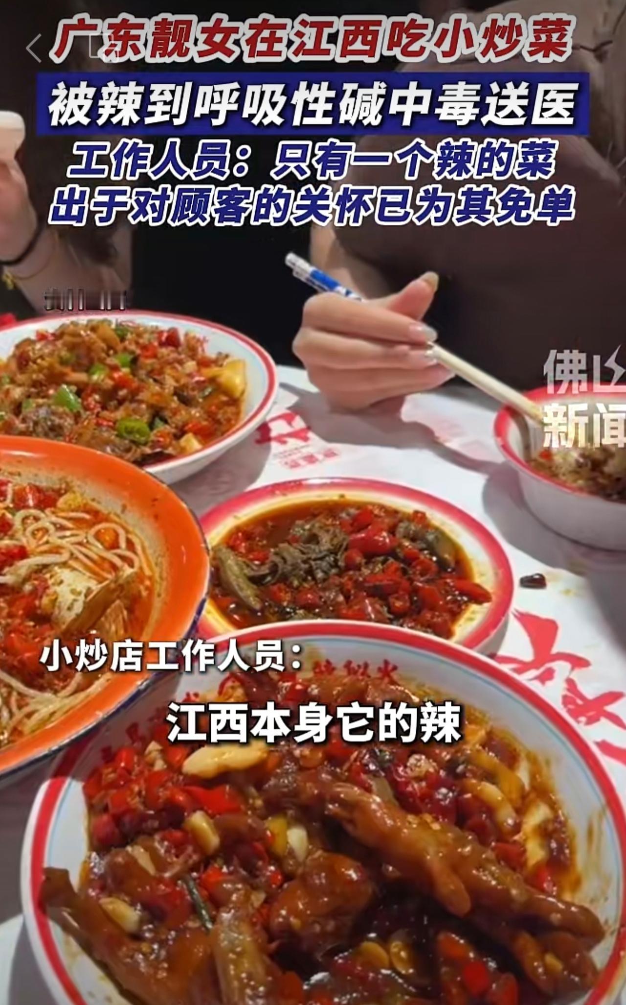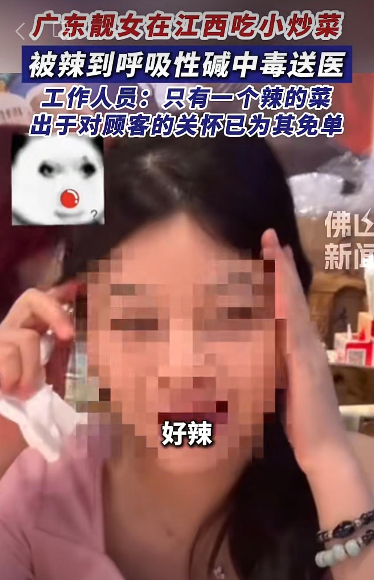广东靓女在江西吃小炒菜,被辣到呼吸性碱中毒送医,工作人员:只有一个辣的菜,出于对