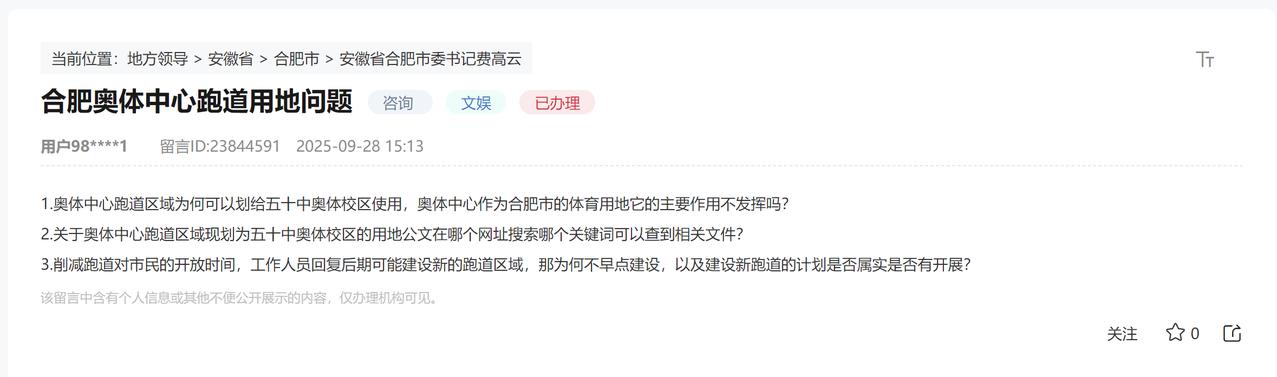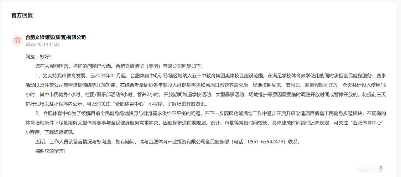 合肥奥体中心感觉除了办演唱会,其他也是闲置的多。给人印象最深的是当年国足在这里1比5输给泰国。现在有人问,奥体中心跑道区域为何可以划给五十中奥体校区使用? 官方回答:为支持我市教育发展,自2024年11月起,合肥体育中心训练场区域纳入五十中教育集团奥体校区建设范围。
