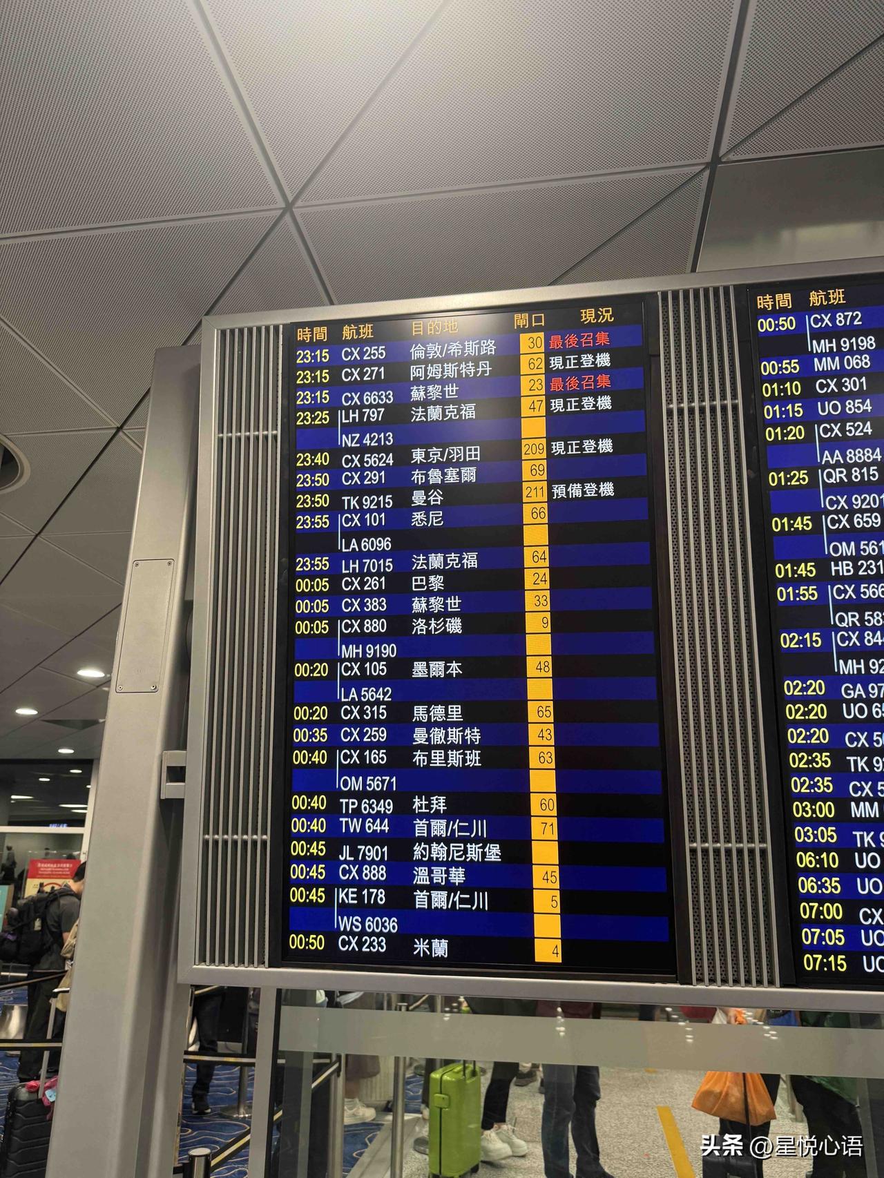 在大屏下,有种世界在脚下的感觉! 香港机场这航线真的离谱! 左边是飞伦敦、巴黎