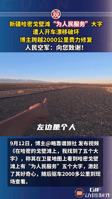 网红博主为了拍一张照片,居然调用了一颗卫星,空军大领导看到后指示该发表:向你致敬! 这事儿得从新疆哈密一片广袤的戈壁滩说起,一位叫“略靠谱旅社”的博主,在百无聊赖地翻看卫星地图时,被几个巨大的汉字给镇住了,这可不是什么恶作剧,而是正儿八经刻在大地上的五个大字,“为人民服务”。 这几个字因为一次民间的修复,一次来自太空的“凝视”,再加上空军官方的点赞,瞬间把几代人、不同身份的人给连接在了一起,成了一个特别有意思的文化现象,这片地标可有年头了,是上世纪60年代解放军第八航校的老前辈们弄出来的,当时就是给飞行员当地面标识用的,帮他们认清航线,说白了它是个功勋卓著的历史遗物。 可当这位博主和朋友们开了2000公里车赶到现场时,心都凉了半截,这片历史的印记,被一些玩越野漂移的车给碾得不成样子,这种破坏,不光是物理上的,更像是一种提醒:再深刻的记忆,要是没人管,也经不起时间的风沙和现代社会的漠视。 最初只是好奇,可看到这番景象,博主心里那股劲儿一下就上来了,不能就这么算了,不能让这段历史被人遗忘,于是他和朋友们做了一个决定:自掏腰包,把它修好,这可不是个小工程,他们花了一个多礼拜的时间,硬是把这几个大字给重新整了出来,这群当代年轻人的举动,没有宏大的口号,却用最实在的行动,给“为人民服务”这句标语做了一个超接地气的注解。 可问题来了,修复得怎么样,他们在地面上根本看不出个所以然,人在其中,视野有限,完全没法确认整体效果,更麻烦的是,新疆全境都禁飞无人机,想航拍检查一下都不行,就在一筹莫展的时候,一个脑洞大开的想法冒了出来:既然无人机不行,那天上的卫星行不行?他们联系了长光卫星公司,请求调用一颗叫“吉林一号”的在轨卫星帮忙拍张照。 这操作简直酷毙了!9月28日中午12点45分51秒,卫星飞过目标上空,利用短短23秒的窗口期,精准地拍下了修复后的地标,当清晰的卫星图传回来,确认字体已经完整无缺时,所有人都松了一口气,科技在这儿,从曾经被服务的对象,变成了守护历史的“天眼”。 9月12日,博主发布了第一条探索视频,而记录整个修复和卫星确认过程的视频,则在10月10日与大家见面,事情的高潮,发生在第二天,10月11日“人民空军”的官方账号竟然出现在了视频的评论区,官方的留言情真意切:“人民空军为人民,人民空军人民爱”,后面还跟上了一个致敬的表情,这一下整个事件的意义瞬间被拉满了,这不只是一次点赞,这是一场跨越了半个多世纪的对话。 由当年的军人创造的历史印记,被当代的人民自发守护,最终又得到了军队官方的认可和感谢,这形成了一个完美的闭环,也让那句“军民一家”的口号,变得无比生动和真实。 从戈壁上几个孤独的大字,到一个引发全网共鸣的热点事件,这不仅仅是一次成功的文物修复,更是一次关于历史、责任、科技和情感的奇妙互动,它证明了,“为人民服务”这句话的生命力,从来不只停留在书本里或者纪念碑上,它就活在每一个普通人每一次微小却坚定的行动之中。 以上信息来源于观察者网
