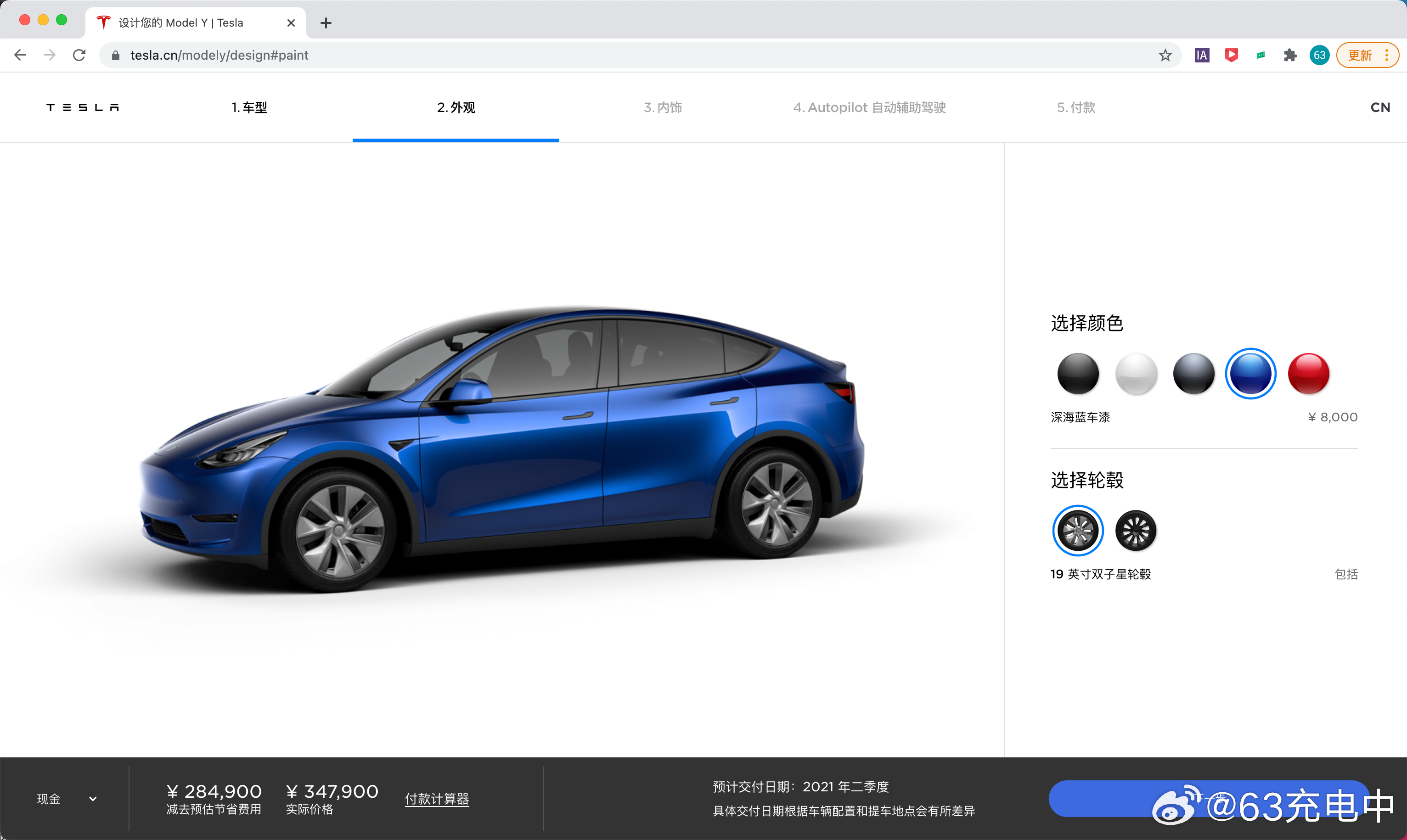 这个颜色比之前特斯拉用过的深海蓝更深一些,在欧洲选装价格 1,300 欧,比 Quick silver 和 Ultra Red 的 2,600 欧便宜一半。