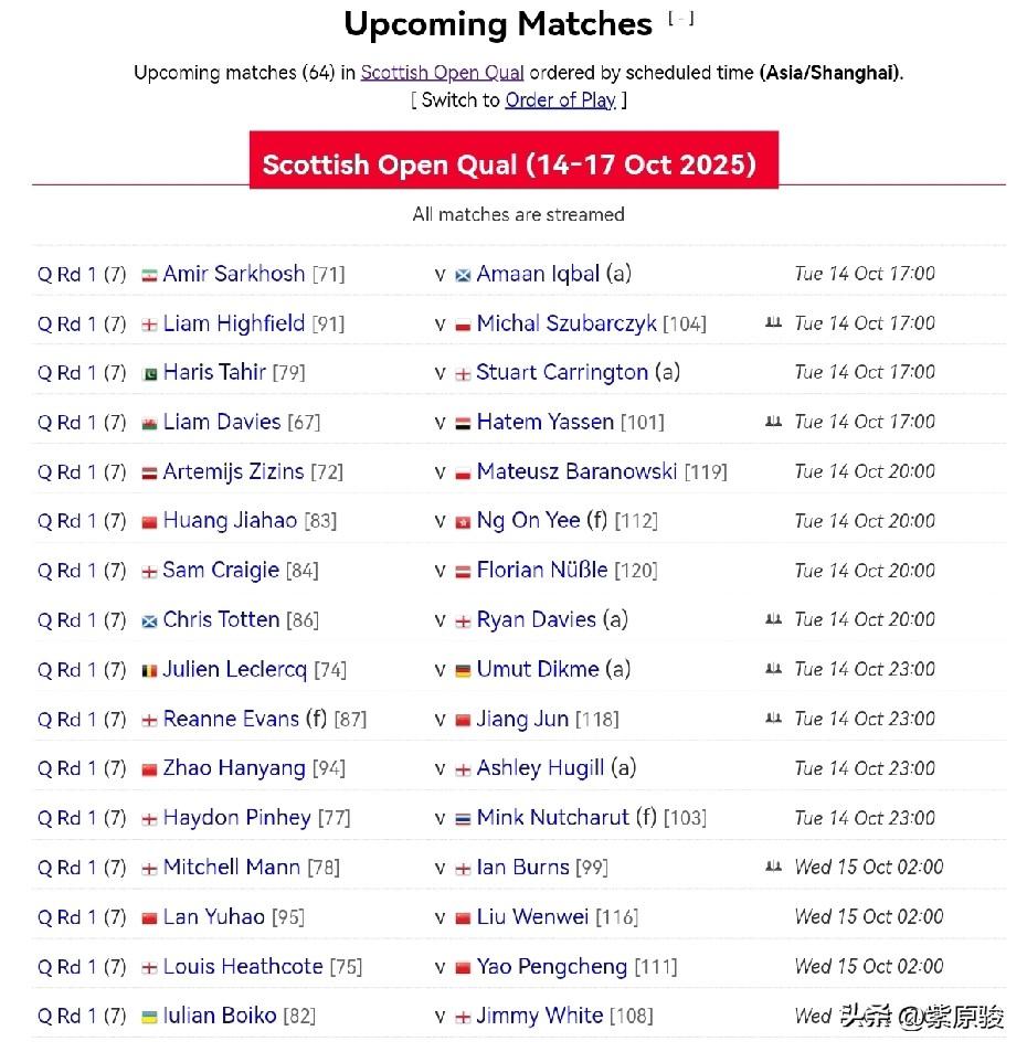 英国本土系列赛之一——苏格兰公开赛资格赛今天开打,到17日结束,两轮资格赛一共有