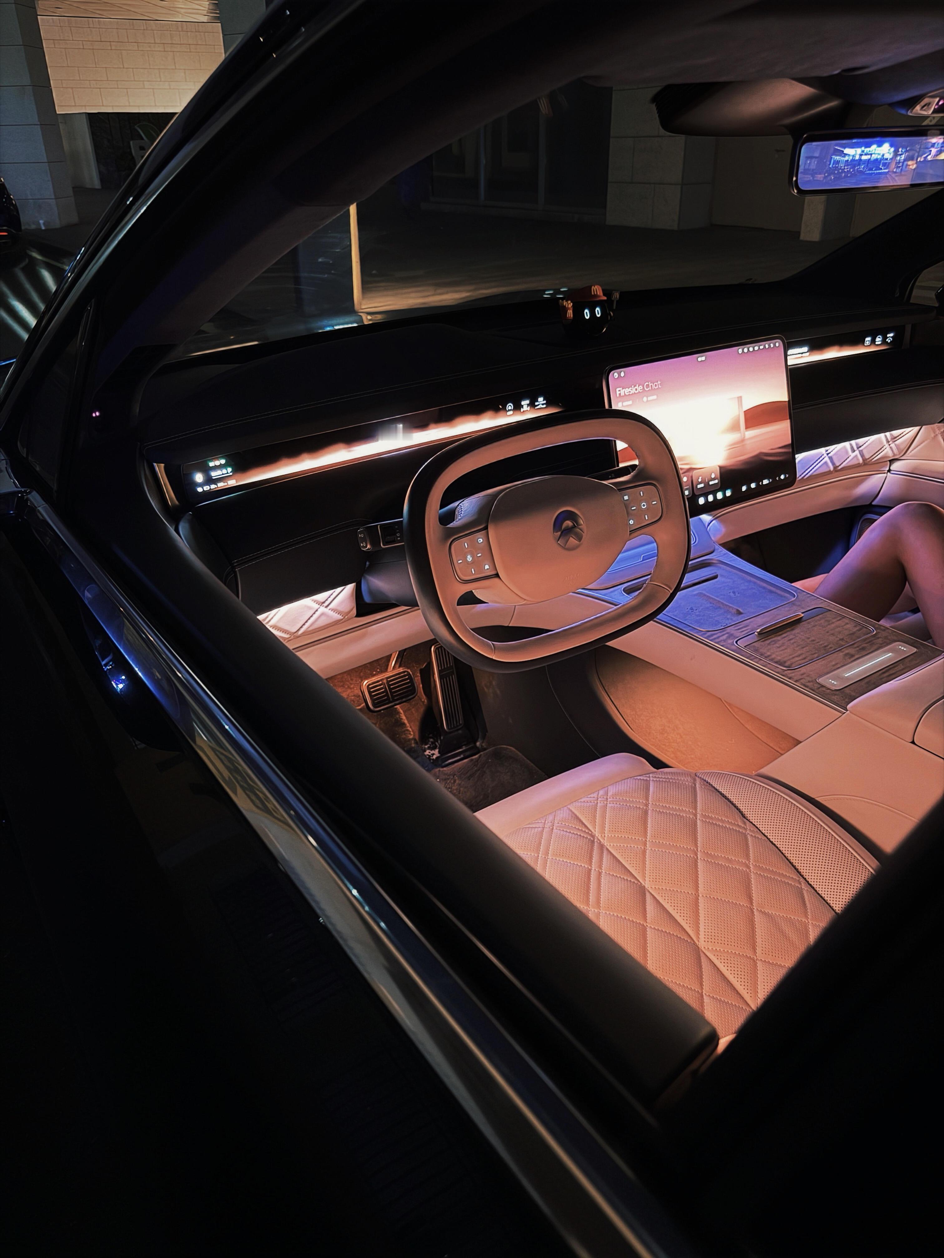 哇,这氛围感真的绝了!夜幕下的ET9,内饰就像把银河搬进了车里。[捂嘴哭]