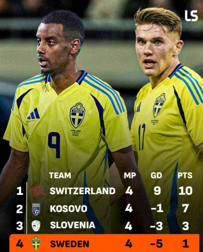 世预赛欧洲区小组赛B组第4轮,世界第32的瑞典0-1不敌世界第91的科索沃,确定无缘直接晋级世界杯。 瑞典世预赛已4轮不胜,且在拥有总身价1.95亿的两大神锋伊萨克和约克雷斯的情况下,近3轮都未攻获进球,目前暂以1分垫底,落后榜首瑞士9分,落后第2的科索沃6分。 因欧国联积分高,瑞典目前仍有机会通过附加赛晋级。