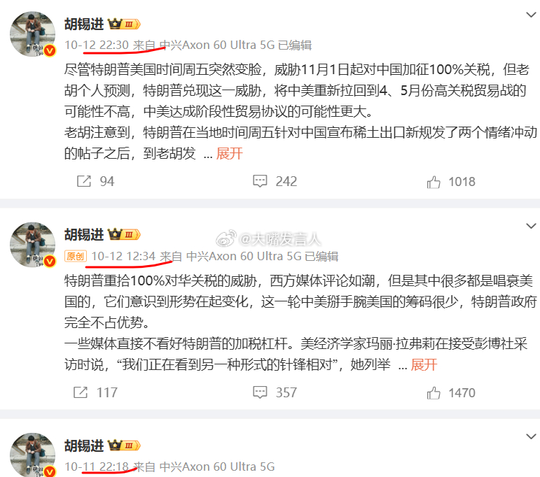 胡锡进称中国新信息大挫华盛顿气焰 胡锡进前天晚8点钟转发的巴基斯坦转售美国稀土的新闻(图2),被昨天发言人驳斥并定性为“不了解实情,或是捕风捉影,甚至是挑拨离间”之后(图3),胡老师的微博上就看不到那篇文章了(图4)[哈哈][哈哈]