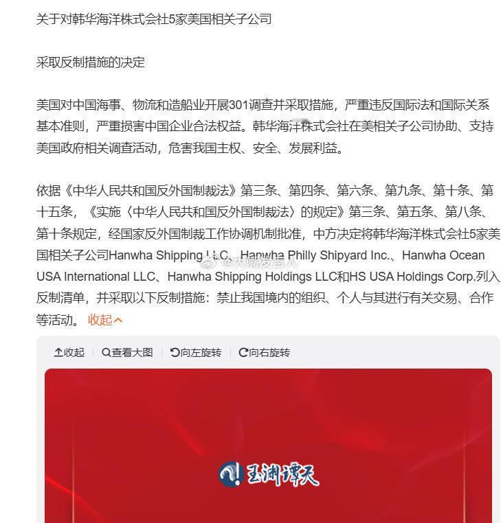 中国对5家美国相关子公司采取反制措施 观察到一个现象,喜欢针砭时弊、批评国内各种不足的(我支持这种行为)法律类教授学者、网红律师们,往往面对美国制裁中国、打压中国的新闻发生时,他们会装作看不到、不评论,比如以前在过微博、现转往B站的某翔老师,他们就不敢、不愿从法律角度分析美国的行为是否流氓、有多么流氓了[黑线][黑线]