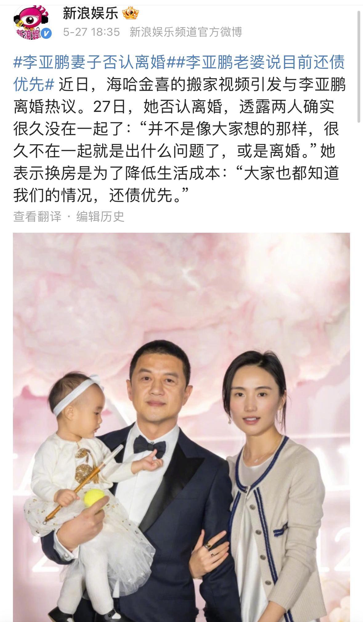 李亚鹏再次官宣离婚,五月份李亚鹏妻子曾经辟谣过离婚传闻。