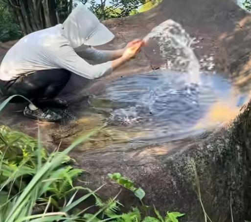 这个石头盆太奇妙了!福建,一男子户外登山时,发现山顶有个“石头盆”,之间装满了水