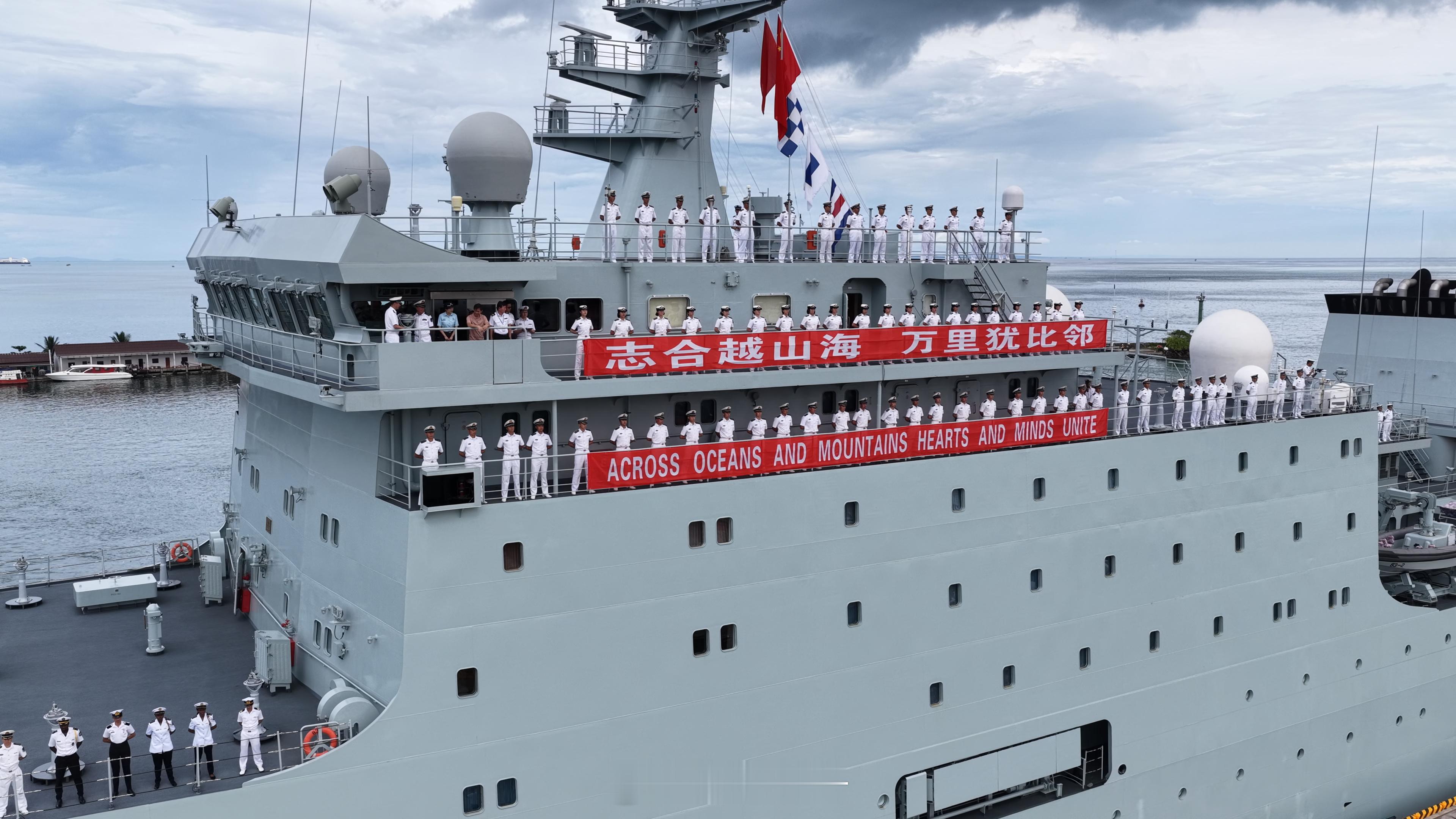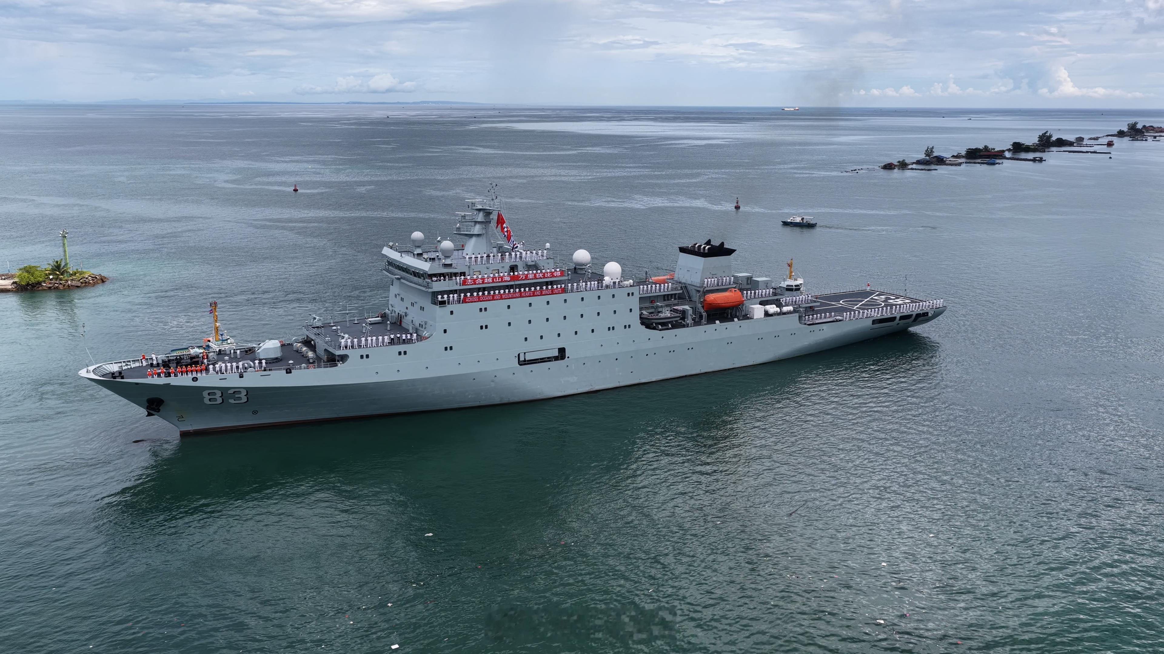 【海军83舰编队结束对柬埔寨友好访问 起程前往泰国】10月14日,海军83舰编队结束对柬埔寨为期4天的友好访问,从西哈努克港起航前往泰国。当地上午10时,柬方在码头举行欢送仪式,中方大使馆人员、中资机构与华人华侨代表,以及柬政府军方代表等300余人到场送行。编队官兵及学员代表分区列队,向送行人群挥手告别。(陈梦曦 尹相琨 李大公 徐梦函 王晨曦 张光鑫 王懿 张镕基)
