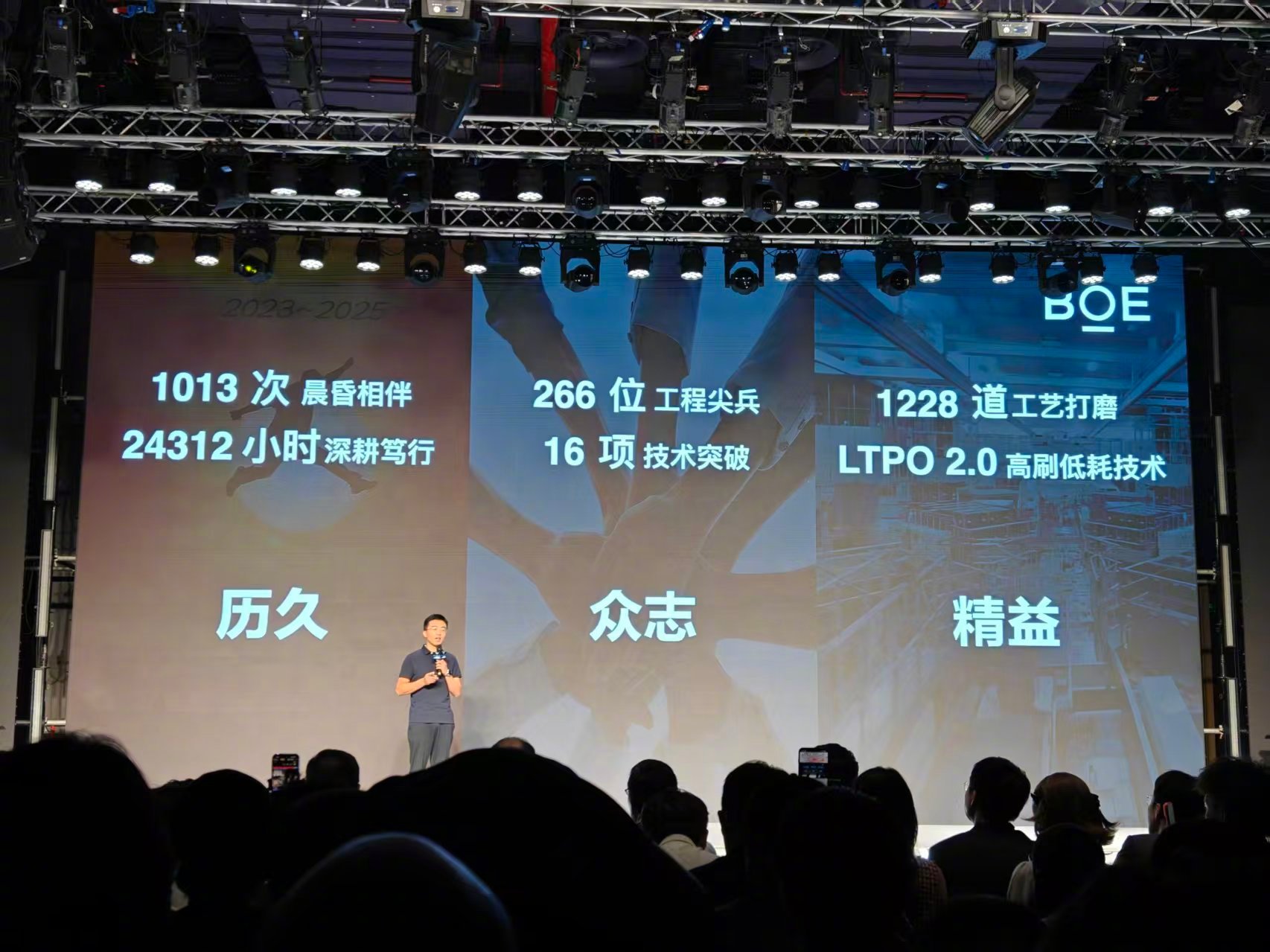 一加与京东方联合举行柔性OLED旗舰新品发布会,正式发布第三代东方屏:在材料、电路与算法三端协同下,实现165Hz高刷与高分辨率并存,触控—显示全链路同步,点击响应约10ms;基于京东方X3发光材料、Display P3自研芯片与LTPO 2.0,辅以九大自研显示算法,对亮度均一性与色彩一致性大幅提升。