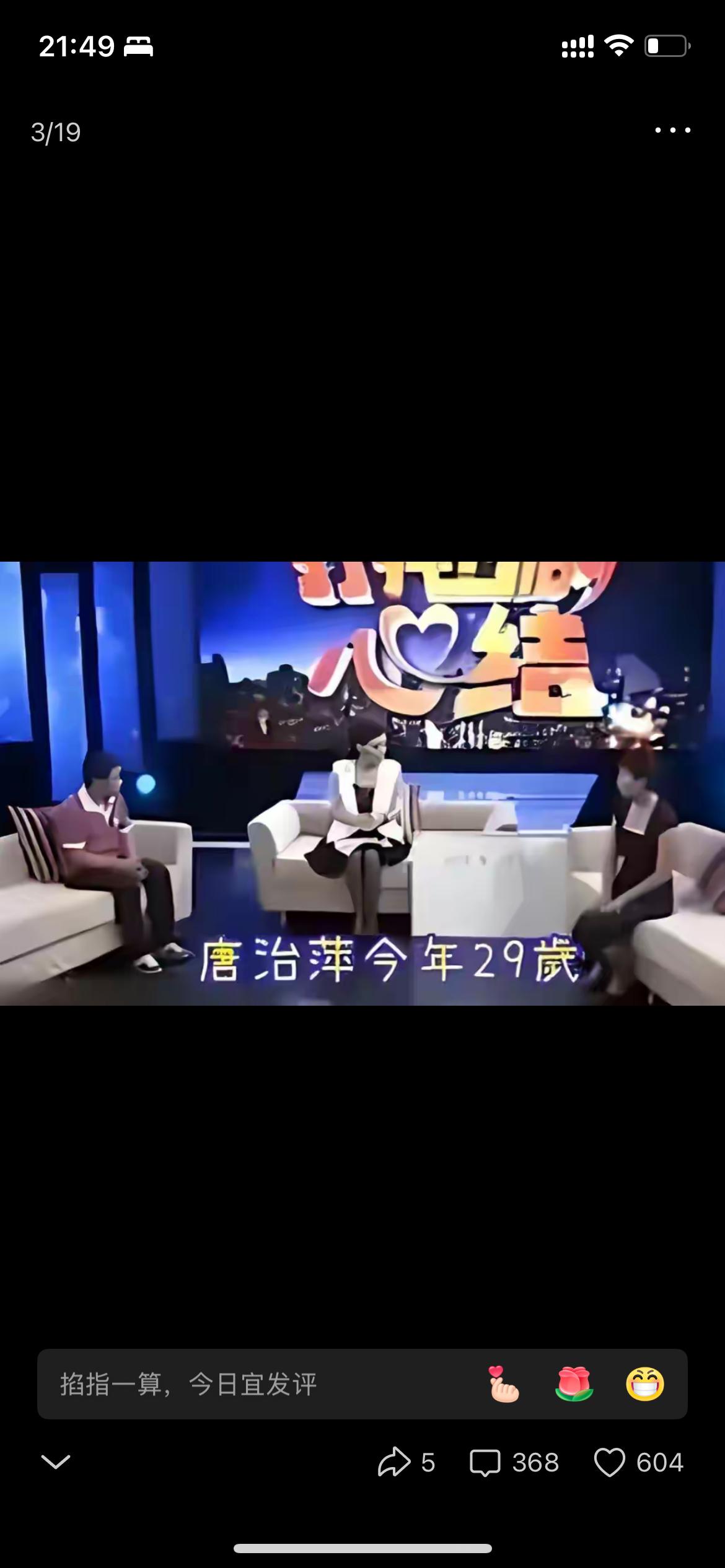 2019年秋季,唐治萍在一档相亲节目里成了焦点。她穿着黑裙、踩着高跟鞋登场,宣称
