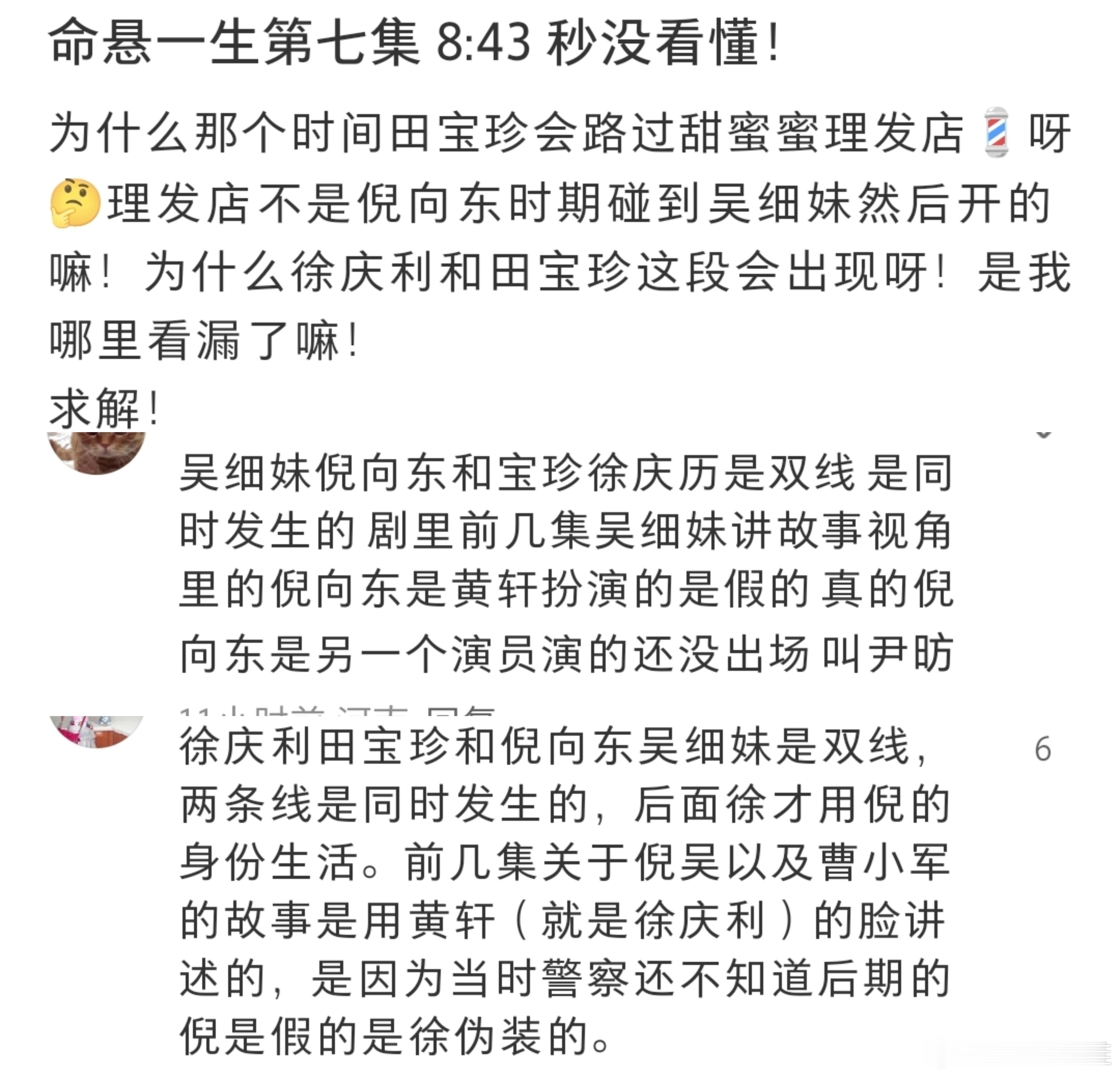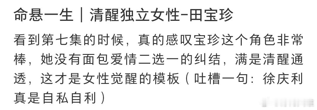 谁还没为《命悬一生》第七集疯狂!8分43秒田宝珍遇吴细妹那段,镜头明明很松弛,我却看得直拍桌!徐庆利还和宝珍恋爱,细妹已跟混混纠缠,宝珍那句“要好女人还是好控制的”超清醒,连理发店旁都是徐庆利去的发廊,细节太绝!电视剧命悬一生