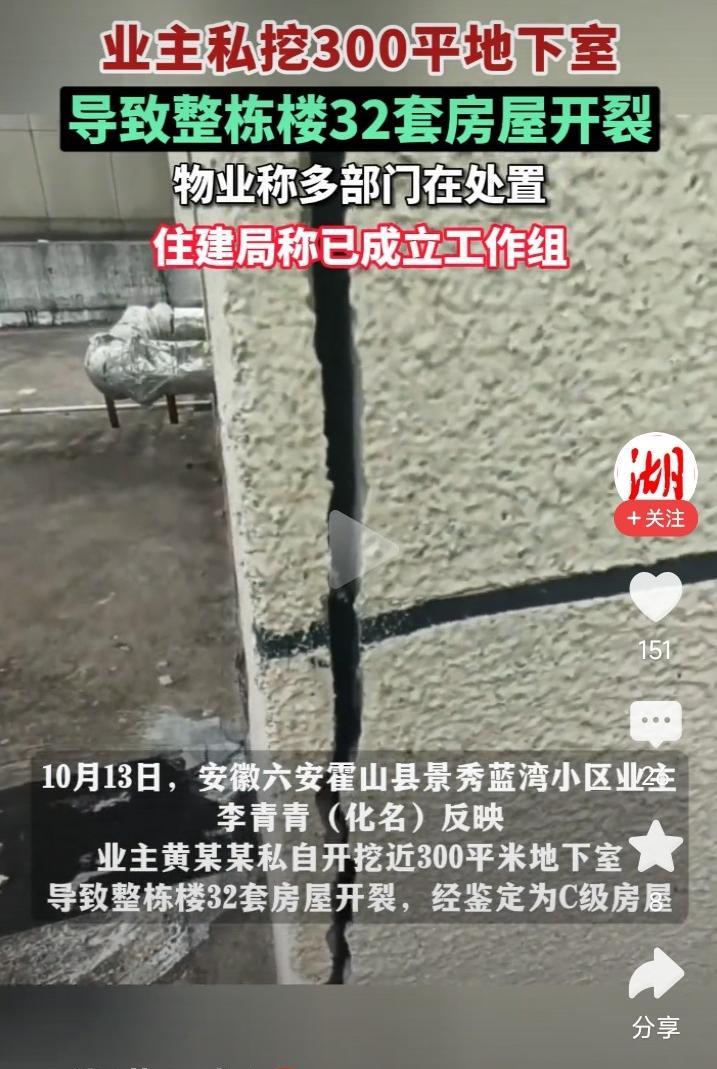 一个敢想,一个敢干[发怒][发怒] 房东业主想往地下私挖300平, 包工头白天开挖,晚上外运, 这2人的胆子,真的太大了[捂脸][捂脸] 所谓外行看热闹,内行看门道, 仔细观察现场照片, 你会发现这栋房子是框架结构, 每根柱子下面,都有一个独立基础, 这个独立基础就像人的脚掌一样, 可以让房子站的更稳, 也能把上面的重量更好的传递到地面; 问题是,这个房东为了空间更高, 直接把基础放大脚下方掏空, 等于部分基础都悬在空中,没有着力点, 这样的做法,肯定导致房子出现变形, 最后房屋开裂和漏水[捂脸][捂脸] 据说,上部房屋室内墙面布满横向, 和纵向及八字形裂缝, 部分裂缝宽度较大,可直接塞入手指, 幸好有关部门及时发现, 没有造成倒塌现象, 已经安排施工单位进行维修, 对挖空区域用混凝土回填, 等混凝土凝固后, 独立基础下方就不会悬空, 防止房屋开裂的效果,应该会很明显, 说实话,这么大的开挖量, 物业不可能不知情, 为何没有及时制止呢? 另外#发现邻居私挖地下室你会报警吗# #业主私挖地下室致32户开裂 已被逮捕#