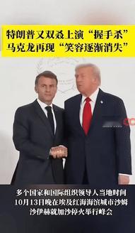 埃及加沙“和平峰会”上,特朗普马克龙上演26秒“掰手腕式”握手,面对镜头交流,两人的表情亮了。 拍合影的时候,马克龙还咧嘴笑呢,结果没两秒笑就僵在脸上,左手抬到半空又缩了回去,等特朗普终于松手。 他肩膀“垮”的一下,那放松的劲,不少媒体都拍下来了,其实他俩不是头一回这么较劲,之前北约峰会就闹过。 当时特朗普催着欧洲多掏钱搞防务,马克龙不服气,握手的时候也使劲攥着特朗普,俩人那时候就没顺过,不过这次是和平峰会,表面上都在谈正事,私下里各有各的想法。 马克龙想让美国帮衬欧洲的维和部队,可特朗普觉得这钱该欧洲自己掏,马克龙肯定不乐意,毕竟欧洲这边也不宽裕,总不能全扛下来。 而特朗普这边,一直觉得帮乌克兰得有好处,想让乌克兰给点回馈才肯继续帮,之前在白宫见面也没顺过,俩人对欧洲帮乌克兰的事看法不一样,一个觉得是借钱,一个觉得掏了不少真金白银,最后也没谈拢。 这次峰会更明显,连握手都带着股谁也不服谁的劲,大家看了这握手的场面,都觉得挺有意思,其实他俩一直没怎么合得来,不管是军费该谁多掏,还是贸易上的关税怎么算,都没少闹别扭,之前见面连眼神都透着不对劲。 不过再怎么别扭,该合作的还得合作,这次峰会也说好了,一起把帮乌克兰的方案弄细点,但俩人那股不对劲的劲儿肯定没消,看他俩握手的力道就知道分歧有多大,下次再见面,指不定还会因为握手闹出新情况呢。
