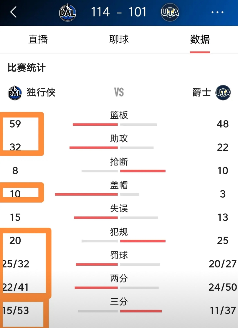 独行侠主帅基德不愧是当今NBA的名帅!在今天独行侠以114:101战胜爵士的季前赛中,球队在主帅基德的英明指挥下在多项重要数据统计方面领先爵士,其中独行侠的篮板球、助攻数、盖帽数、罚球命中数、控制犯规数以及三分球命中数方面全都占优。