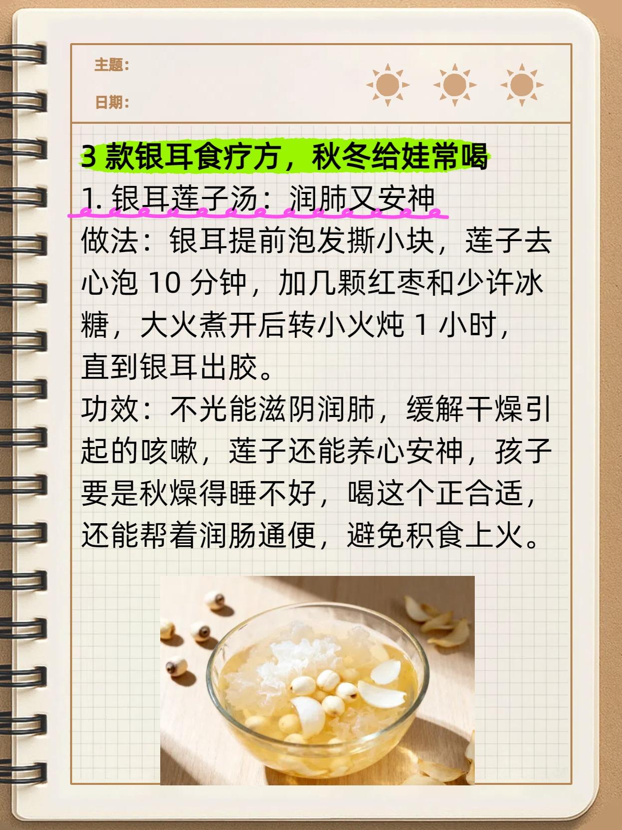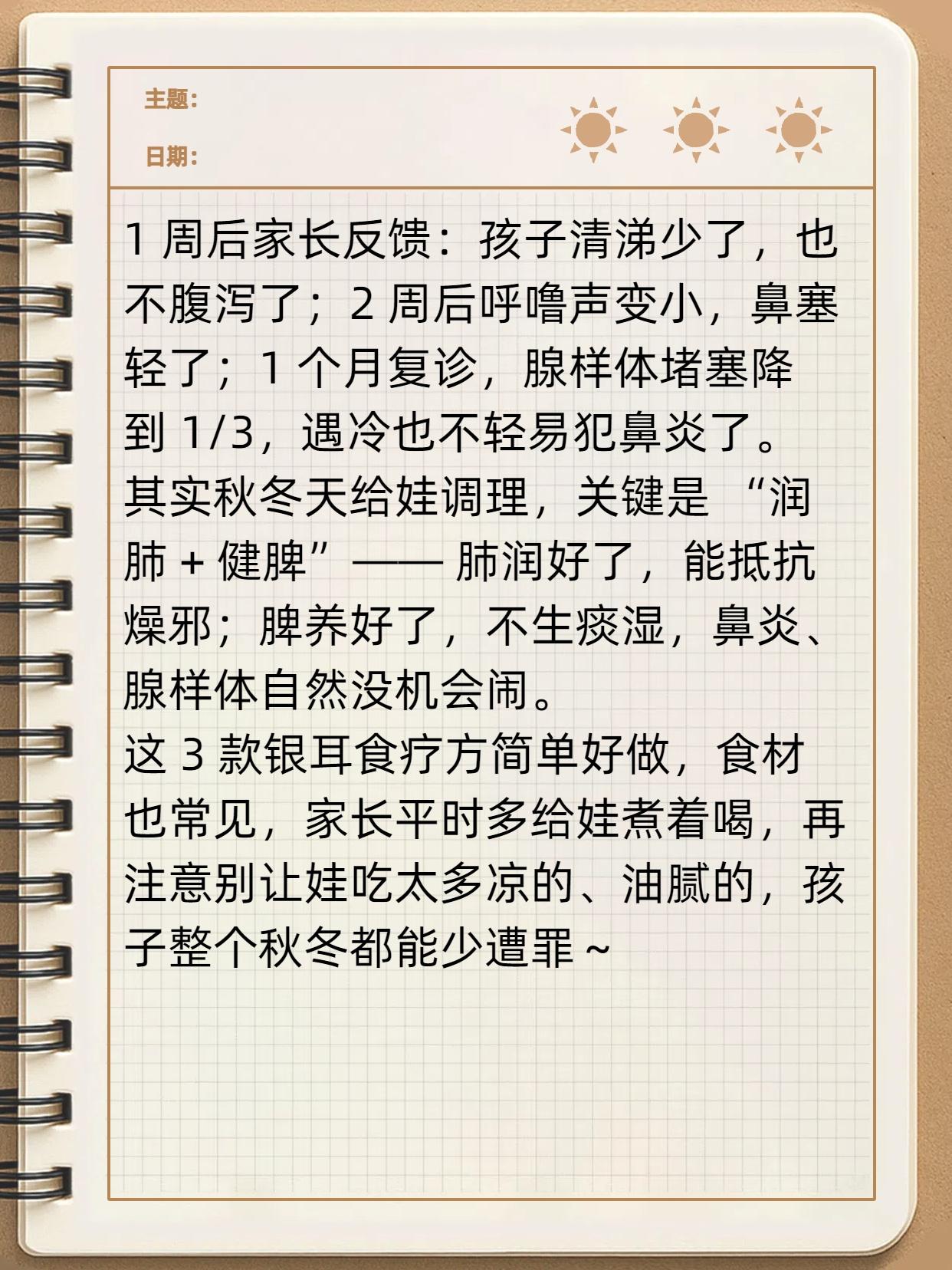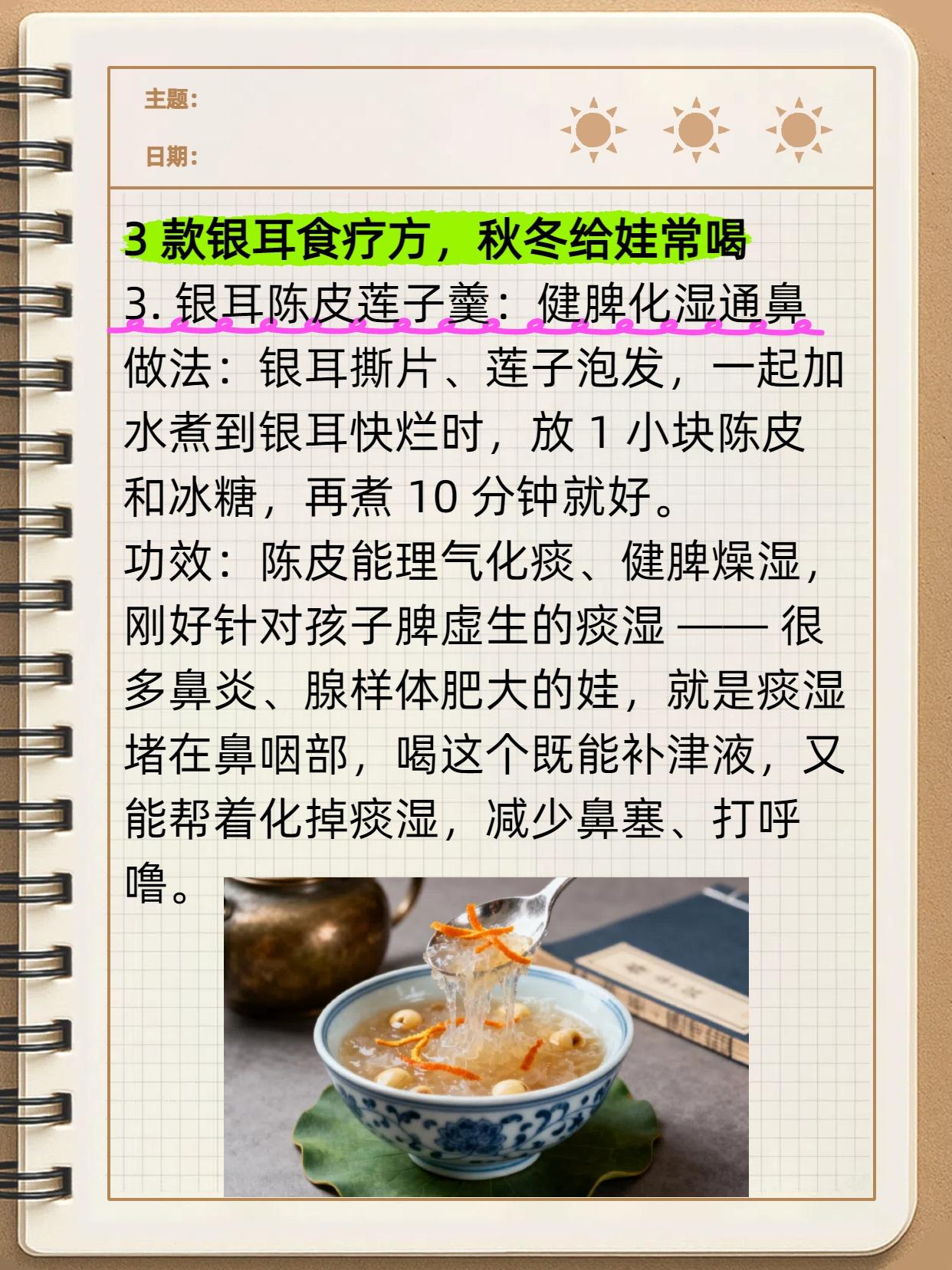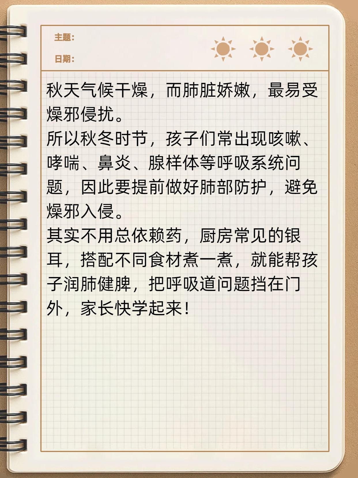 银耳加 1 样,润肺又健脾!孩子咳嗽好了,鼻炎、腺样体肥大也得“靠边站”,秋冬孩子必备! 秋天气候干燥,而肺脏娇嫩,最易受燥邪侵扰。所以秋冬时节,孩子们常出现咳嗽、哮喘、鼻炎等呼吸系统问题,因此要提前做好肺部防护,避免燥邪入侵。 其实不用总依赖药,厨房常见的银耳,搭配不同食材煮一煮,就能帮孩子润肺健脾,把呼吸道问题挡在门外,家长快学起来!