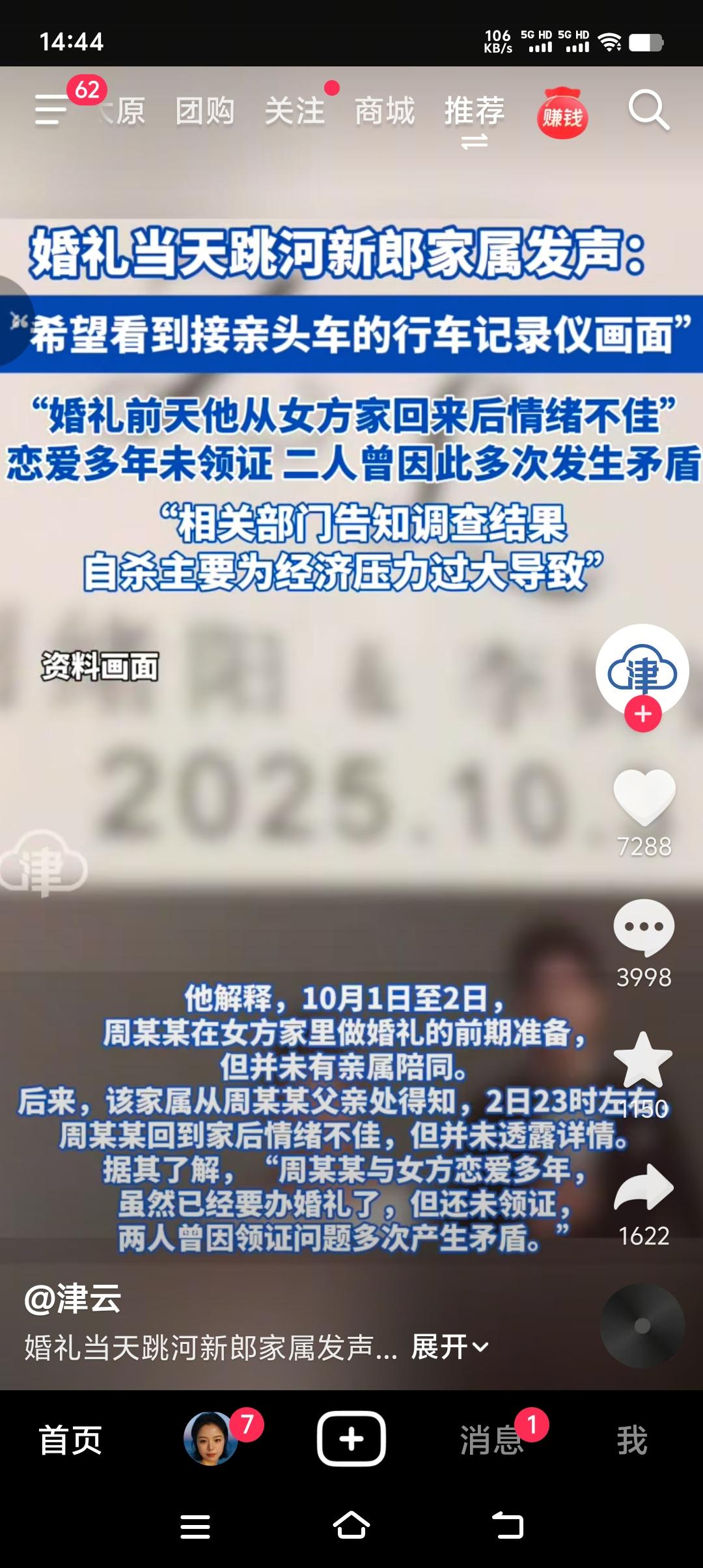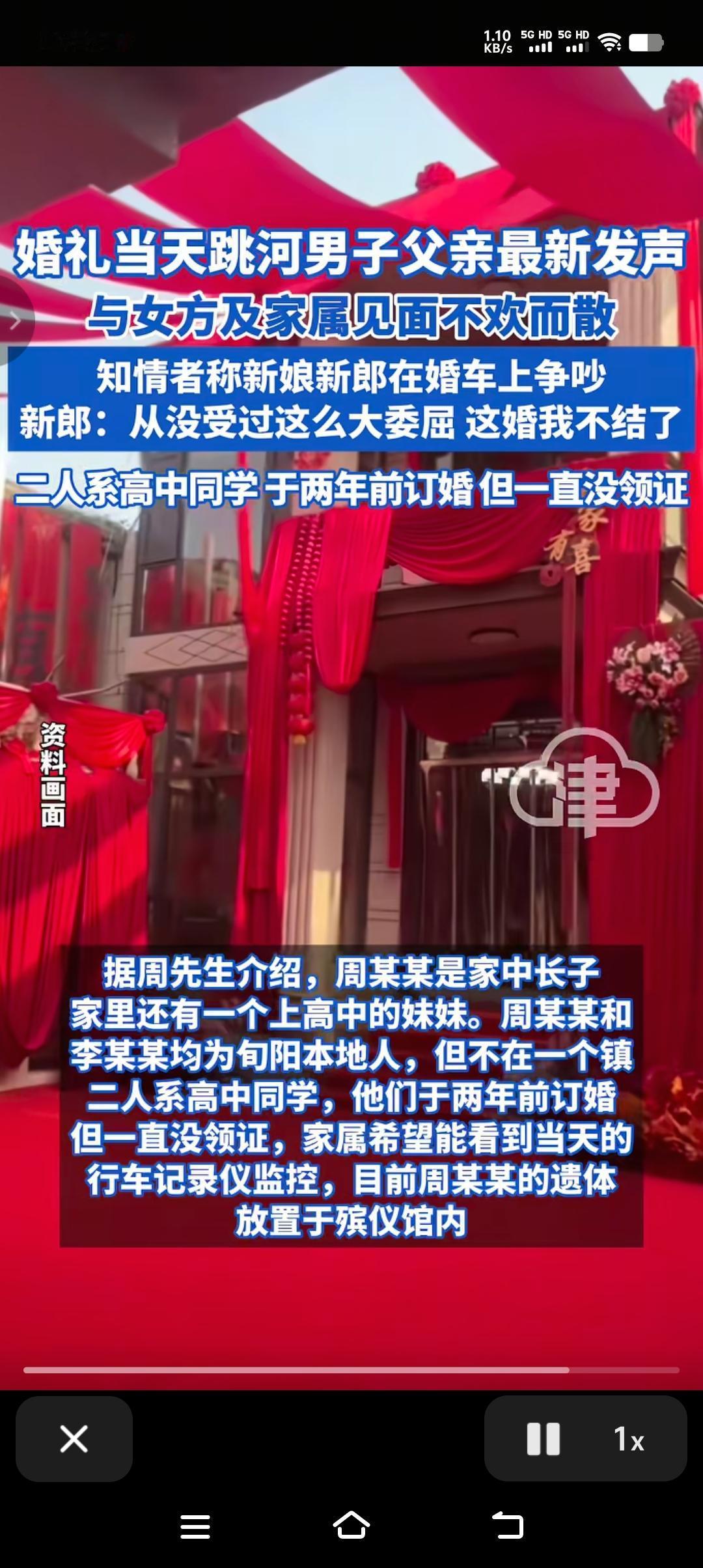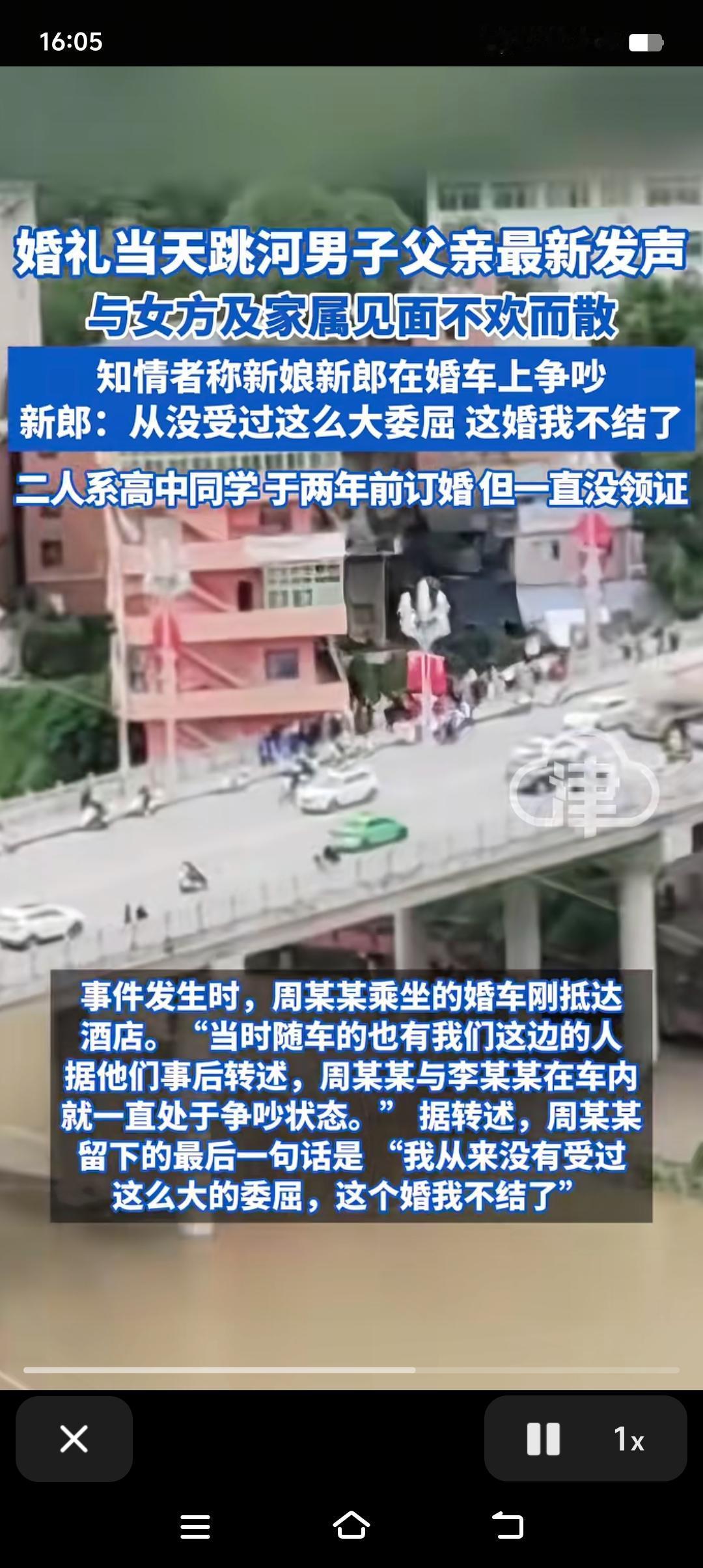 “我从来没受过这么大的委屈,这个婚我不结了”,这是周某生前的最后一句话。没有在沉默中爆发,而是在沉默中沉没。 范进中举能疯了,可想而知一个人情绪崩溃到极点,在爆发的一刹那,大脑是不受控制的,智商是零。爱之深,恨之切,没有选择伤害对方,而是选择了牺牲自己,可见男方是一个多愁善感、性格内向的人。 高中同学,恋爱多年,男方处处想着女方,因为领证多次产生矛盾,订婚到结婚长达两年,婚礼前一天双方有过不悦,婚礼当天两人一直在车里争吵。看了以上这些细节,你就会觉得悲剧是必然的,只不过是迟早的问题了。 风往北吹,你走的好干脆。爱情被一刀剪碎,我已经无路可退。太可惜了,太不值了,太傻了!