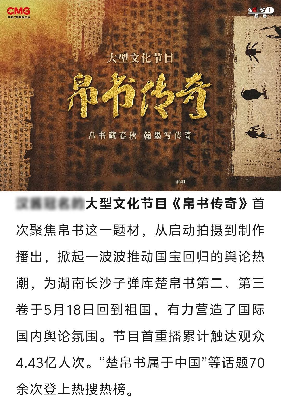 影视寒冬央一16年收视新高藏不住了 永远可以相信央一的格局!别的台在拼流量,央一在拼文化传承。《非遗里的中国》是行走的教科书,《帛书传奇》更绝,播着播着真把国宝“召唤”回国了!这哪是看电视,收视新高实至名归!