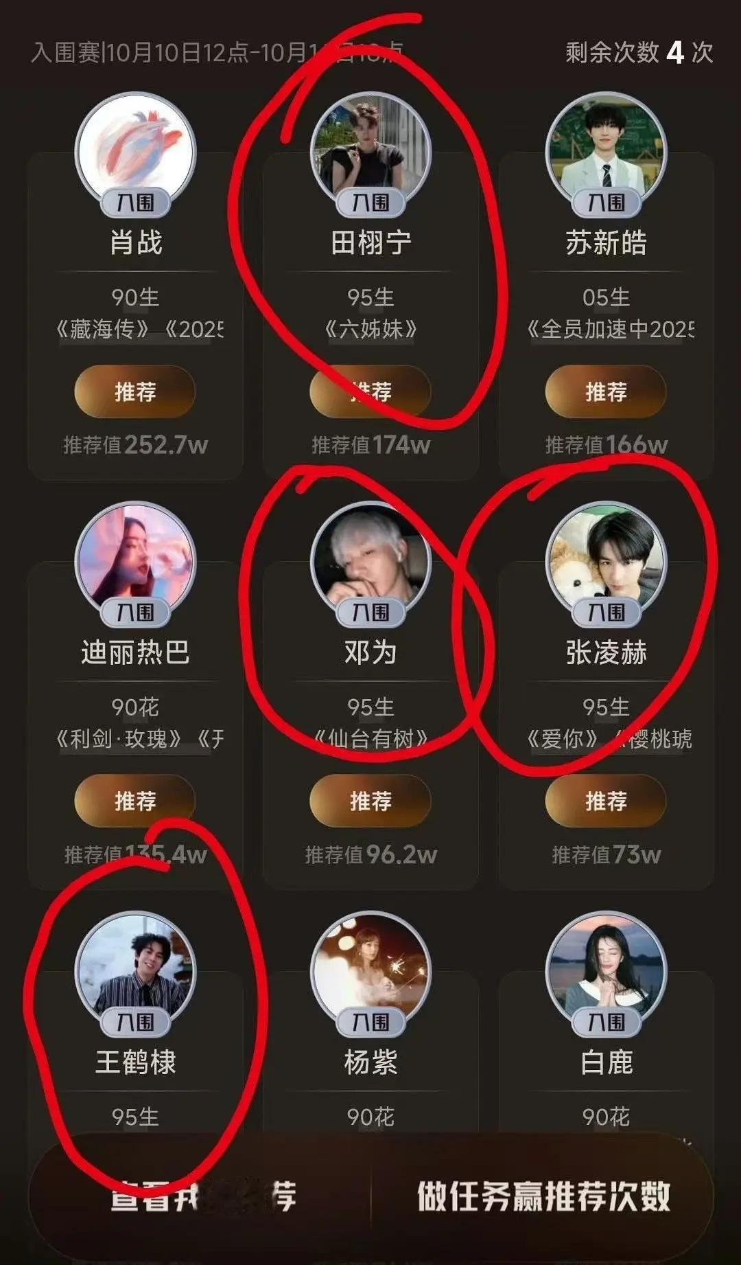 ❶田栩宁❷邓为❸张凌赫❹王鹤棣
