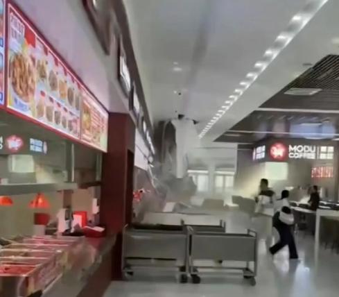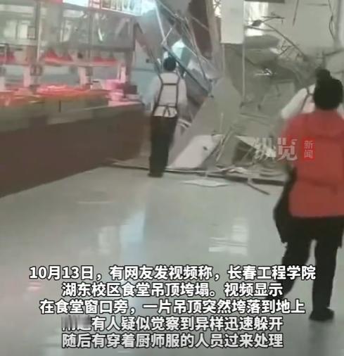 长春工程学院食堂里,学生刚端着餐盘凑到打饭窗口,头顶突然“轰隆”一声——