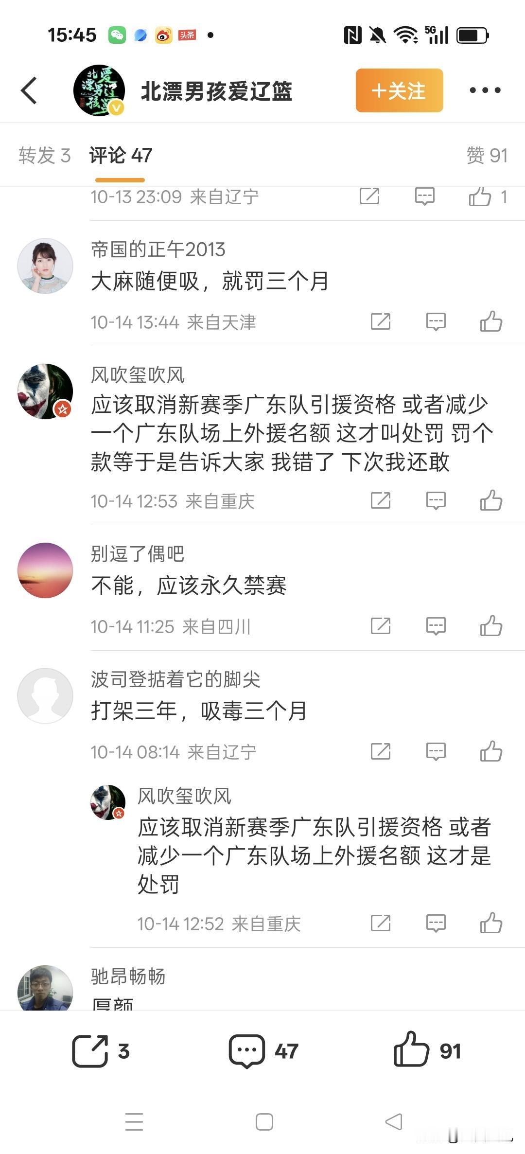 篮协关于对广东男篮外援吉伦沃特吸食违禁品的处罚决定引发热议。 昨天,中国篮协对违规使用兴奋剂的中国男子篮球职业联赛(CBA)外援吉伦沃特处以禁赛3个月的处罚。此处罚决定一出,整个CBA圈子里议论纷纷。有球迷指出:2012年山西队外援马库斯被查出吸食违禁品,篮协对其处以禁赛6个月、时任山西队主教练罚5千元、山西队俱乐部罚1万元的重磅处罚。2016年10月30日山东队球员陶汉林因外出误食瘦肉精导致尿检阳性,2017年1月10号篮协下发结论,对陶汉林免予禁赛,按照违反运动队管理规定罚款5000元;给予山东高速篮球俱乐部负责人、主教练警告处分,给予山东高速篮球俱乐部警告和负担10例兴奋剂费用的处罚(18000元),核减山东高速篮球俱乐部参赛经费8万元。2025年,广东男篮的吉伦沃特兴奋剂处罚却是连带休赛期禁赛3个月,检测费也就免收了。说是禁赛三个月,实则就是一个月。游泳运动员孙杨因为服用兴奋剂被禁赛了4年3个月。 介于中国篮协“一物一拍”的处理决定,球迷有话要说:都说中国体育界对兴奋剂的态度是极为严格的,但是篮协不是。还有的球迷指出:前几天还说零容忍,原来就是这样的容忍!球迷指出:打架禁赛三年,吸毒禁赛三月,你品!也有球迷指出:都是一事一议,看你是那个队的人。还有球迷说:应该取消广东队引外援资格,或者减少外援上场名额。更有球迷直言不讳的说:篮协看人头下菜碟,假如是辽宁男篮外援吸毒,你会见到有史以来最严厉的处罚!球迷议论纷纷,莫衷一是,究竟是球迷的关于一视同仁的意愿太高了,还是篮协处罚决定的弹性太大了?请球迷评论一下!