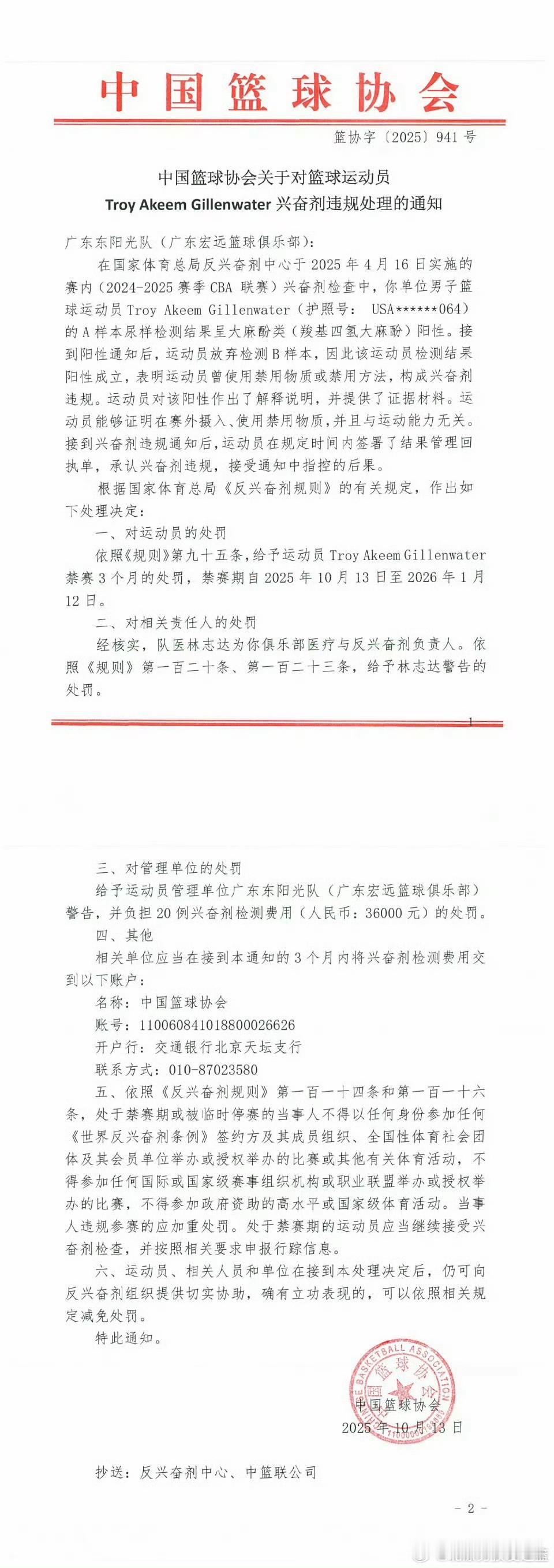 “检测费也就免收了”?明明中国篮协对广东男篮处罚了二十例检测费3.6万元,难道这3.6万元交由小编老娘与小姨们收去了?