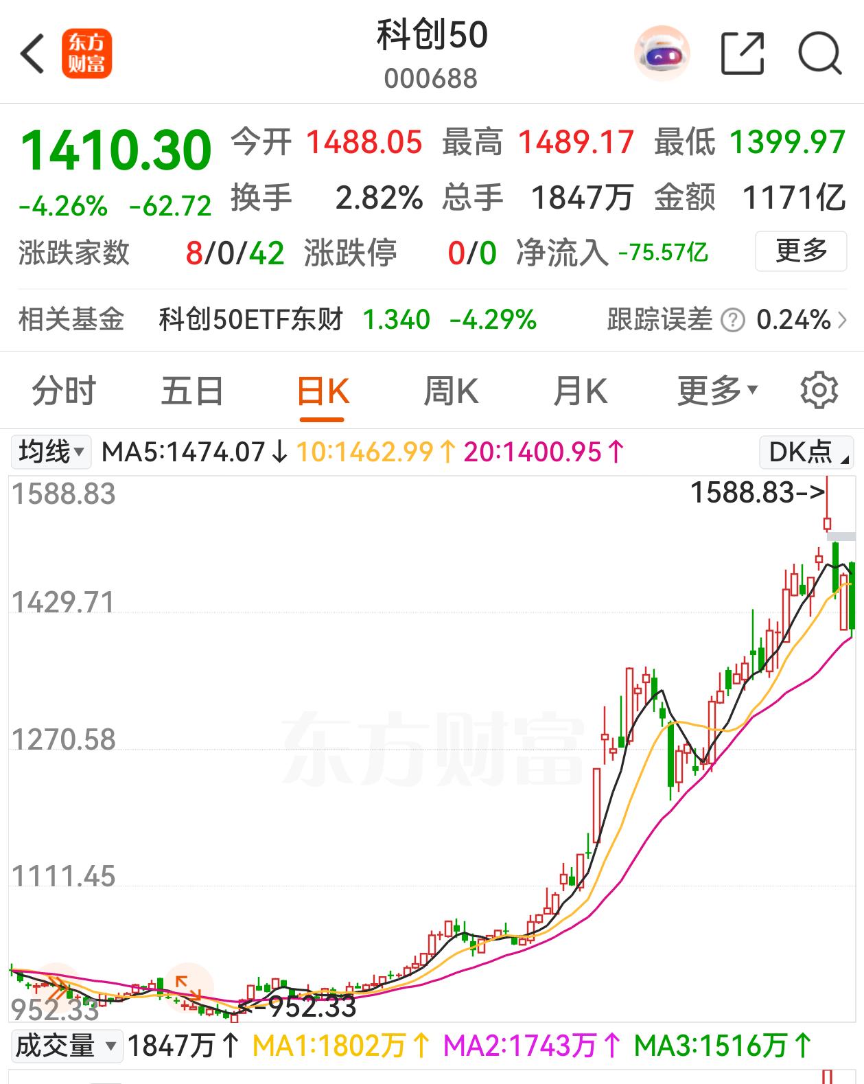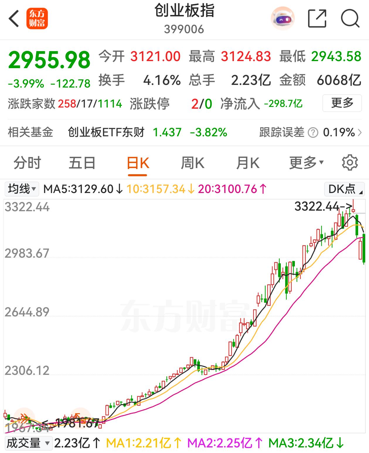 今天的大盘走势叫人搞不懂,昨天市场经受住了外围冲击,今天资金反而选择出逃,昨天的护盘主力双创板块,今天成了市场下跌的动力,创业板、科创50来了个阴包阳,分别下跌3.99%和4.29%,今天两市资金净流出1060亿元。 昨天A股低开高走,稳定了市场信心,今天早盘三大股指高开,但仅坚持了半个小时的时间,科技股集体翻脸,半导体,光模块、人形机器人、创新药等快速下跌,今天跌幅超过5%的个股近500只,杀伤力还是比较明显的,这些前期涨得快,现在跌起来也不含糊,三个交易日,创业板已跌破20日均线,科创板触及20日均线,也就是说一个月(20个交易日)赚得钱,三个交易日就给吐回去了。 在科技赛道快速下跌的同时,不受投资者待见的老登股保险、银行、煤炭、白酒股逆势上涨,一定程度上缓解了市场下跌压力。今天有190亿的资金净流出半导体,有20亿资金净流入银行股,显示从科技股撤出的资金流入“老登股”,调整正在促进市场风格切换。 今天高息权重股上涨,首先还是稳定市场的需要,还有就是资金高低切换,从高位股流向低估值股票。牛市缓涨急跌常有,不可能做到精准逃顶,现在市场没有系统性风险,但市场分化难免。三季报即将披露,业绩行情会出现,已有保险股出三季业绩预告,业绩增长45%—65%,这也是今天保险股上涨的原因;证券股作为牛市受益股,三季度业绩必定亮眼,该来的行情迟早会来;“反内卷”取得成效的行业,业绩会触底回暖,市场有修复机会;科技股会分化,业绩超预期的标的结束调整后还有空间,业绩低于预期的会被取代。
