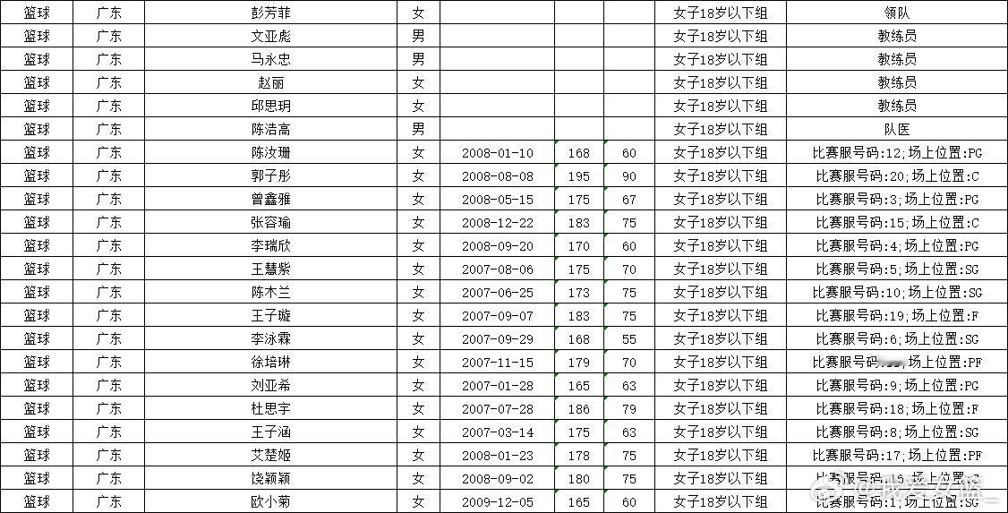 而在U22女篮组别方面,广东队由国青球员张紫玥领衔,15岁国少小将李安妮的入选成为最大惊喜(图2)。U18女篮组别方面,三名国青女篮的小将徐培琳、杜思宇、李泳霖悉数入选(图3)。三人女篮方面,上赛季WCBA的全明星赛三分王周月明领衔名单(图4)。