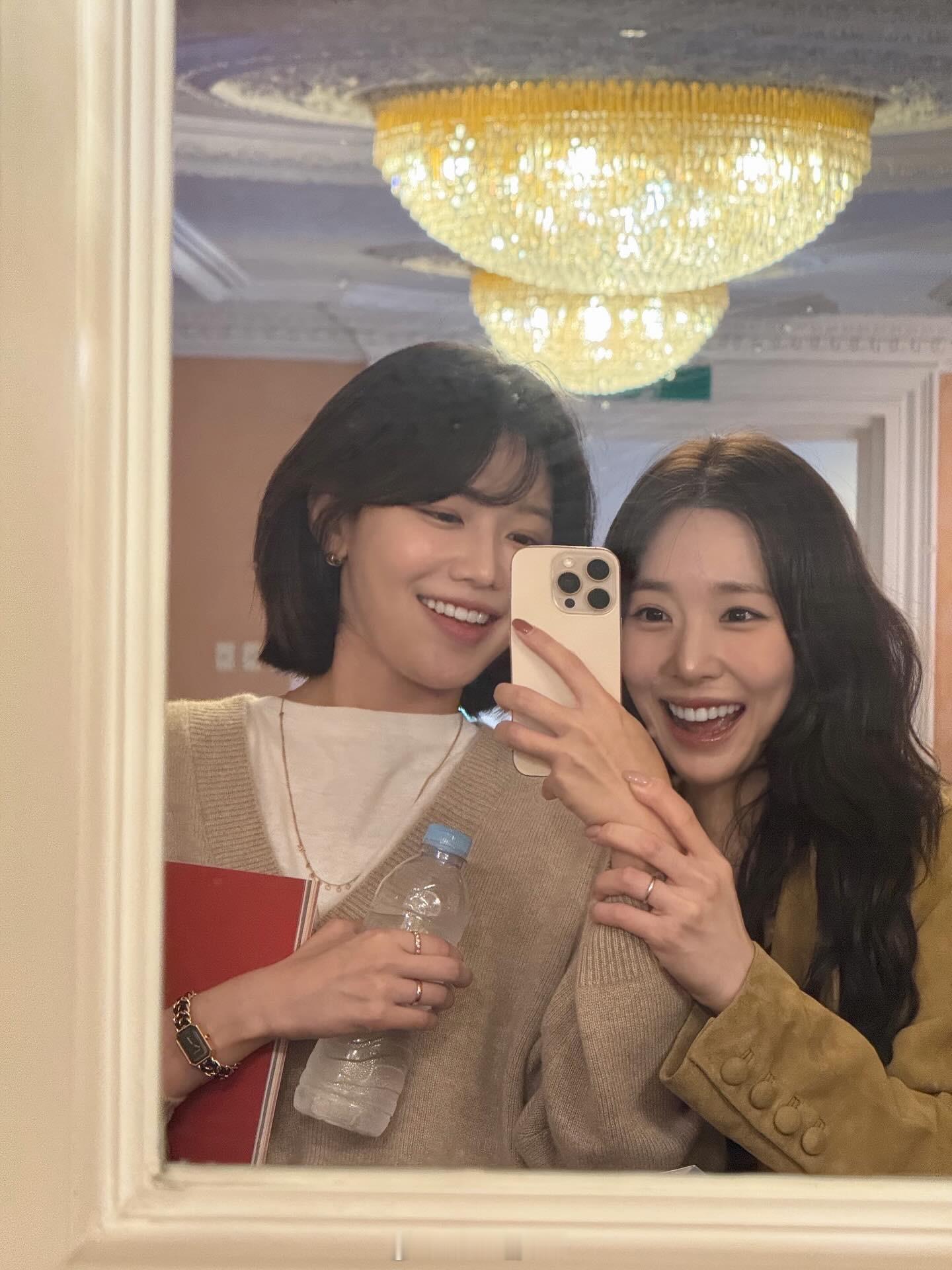张天爱跟素人合影,胯真的好宽,大宅院似的