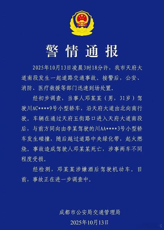 所以,别再只盯着零百加速、最大马力、续航数字了。真正该比的,是谁的车身更硬,谁的逃生通道更可靠,谁的底盘能在失控边缘把你拉回来。这次事故警方已经给出了通报,驾驶员涉嫌酒驾,显得对生命尤为不敬重。