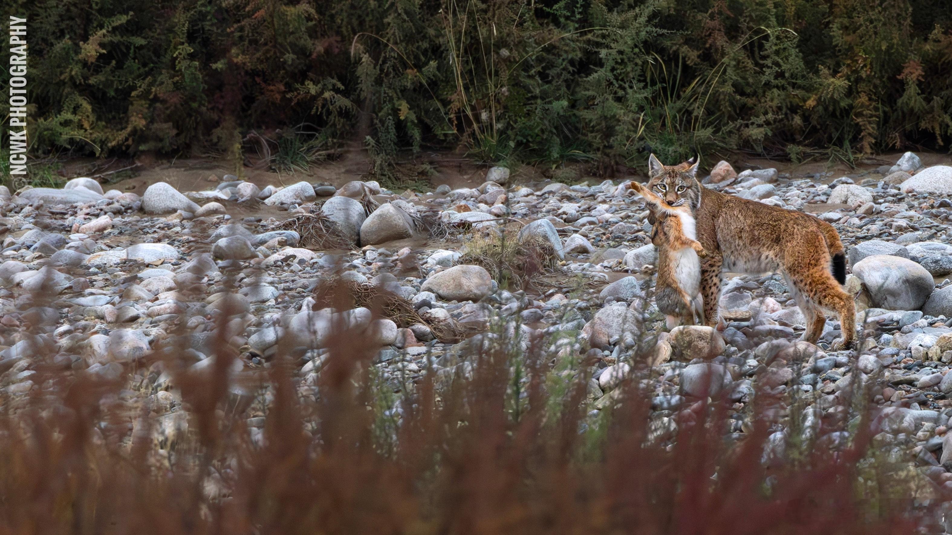 傍晚,这只欧亚猞猁卧在灌木丛中,等待了很久,等着猎物近一点,再近一点。她轻盈的身影划过视线,那是我见过最利落的动作——几乎没任何声音,没犹豫,兔子被瞬间制服,
