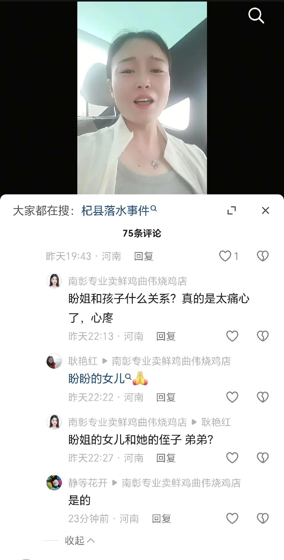图片中这个女人此时此刻太难受了[流泪],8月16号,她37岁弟弟,13岁侄子,14岁女儿,在河南开封蓝丰浮桥黄河处溺水。 根据报道,现场情况是这样的:13岁男孩在浅滩边玩,太淘气,先落水了,14岁女孩在旁边看见后,立刻冲进去救人,随后作为唯一的37岁监护人,义不容辞去解救2个孩子。 可是3个人都没上来,至今为止,14岁女孩被打捞了上来,已经遇难,剩余还在搜救中,不过活的几率渺茫。 通过个人账号,看出另外一个信息,这个女人是房地产中介,如今行情不好,收入很不稳定,还剩下2个孩子需要抚养,希望能够坚强呀。 新闻年年报道类似事件,老师每次寒暑假都会叮嘱,禁止在野外下水,怎么不听呢[发怒]? 这是黄河呀,河水泥沙含量超高,很多河床全是深不见底的烂软泥,掉进去后会绝望的被慢慢吞没。