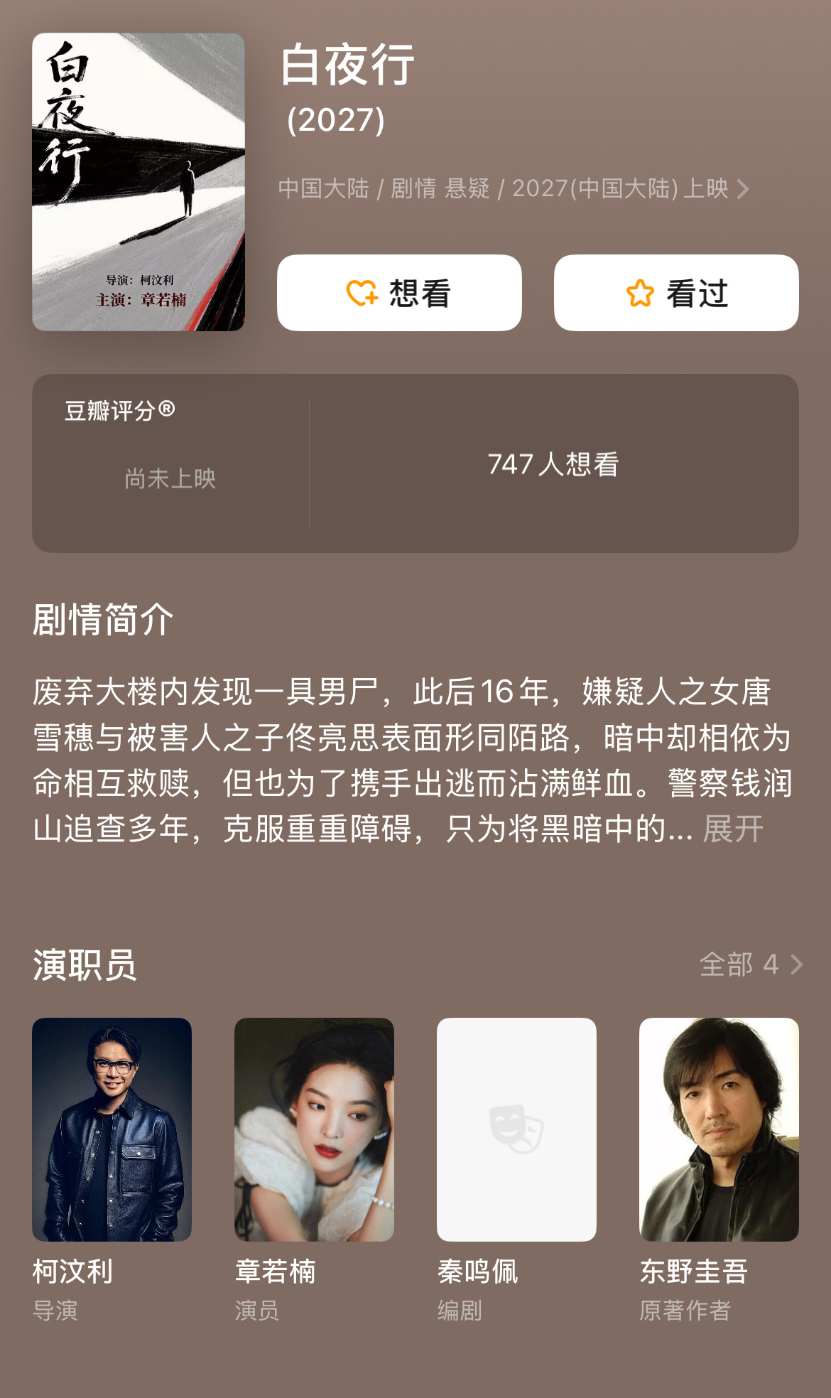 白宇帆辟谣出演《白夜行》:没找过我此前网传阵容为章若楠+白宇帆白宇帆不出演白夜行