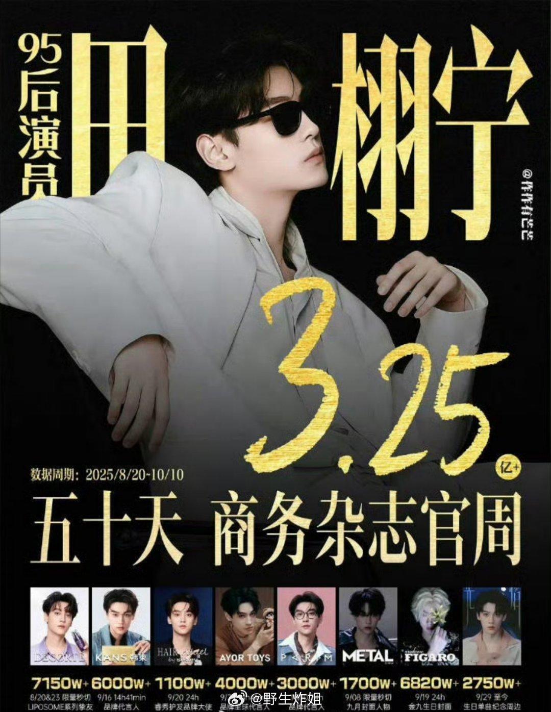 有网友汇总了王鹤棣VS田栩宁的商务汇总实绩,两位都是流量小生,但貌似方向不太同啊