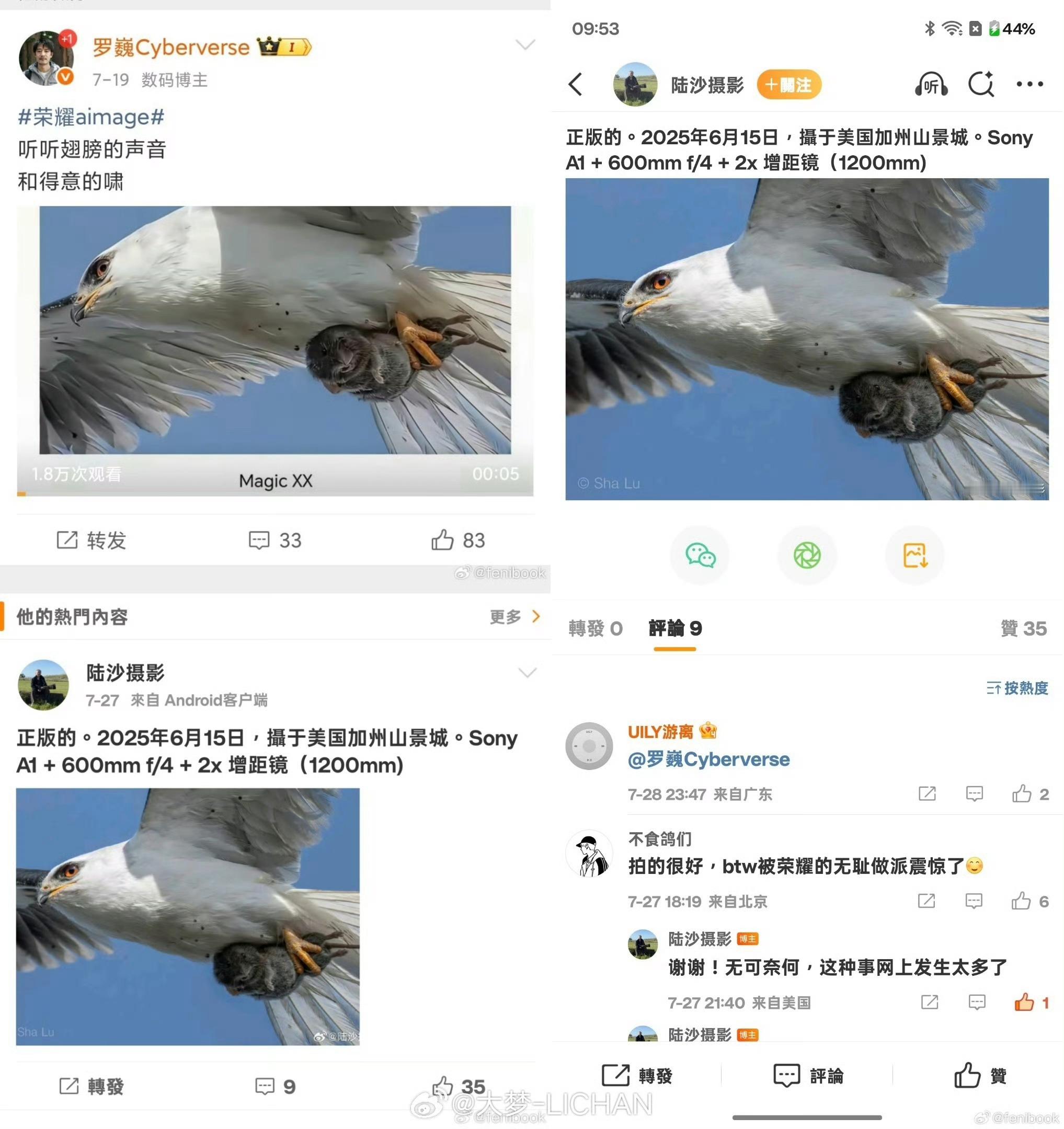 网友没发现就是我拍照牛逼,网友发现了就说我其实是钓鱼。罗巍在网上蹦跶这么多天了,品牌居然一点不管,荣耀是真的不在乎路人缘了吗?
