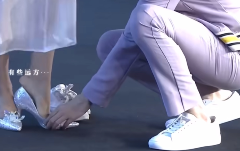 他还会弯腰低下身子帮她穿上水晶鞋,我想这一刻应该是这位女粉丝最幸福的时刻吧。