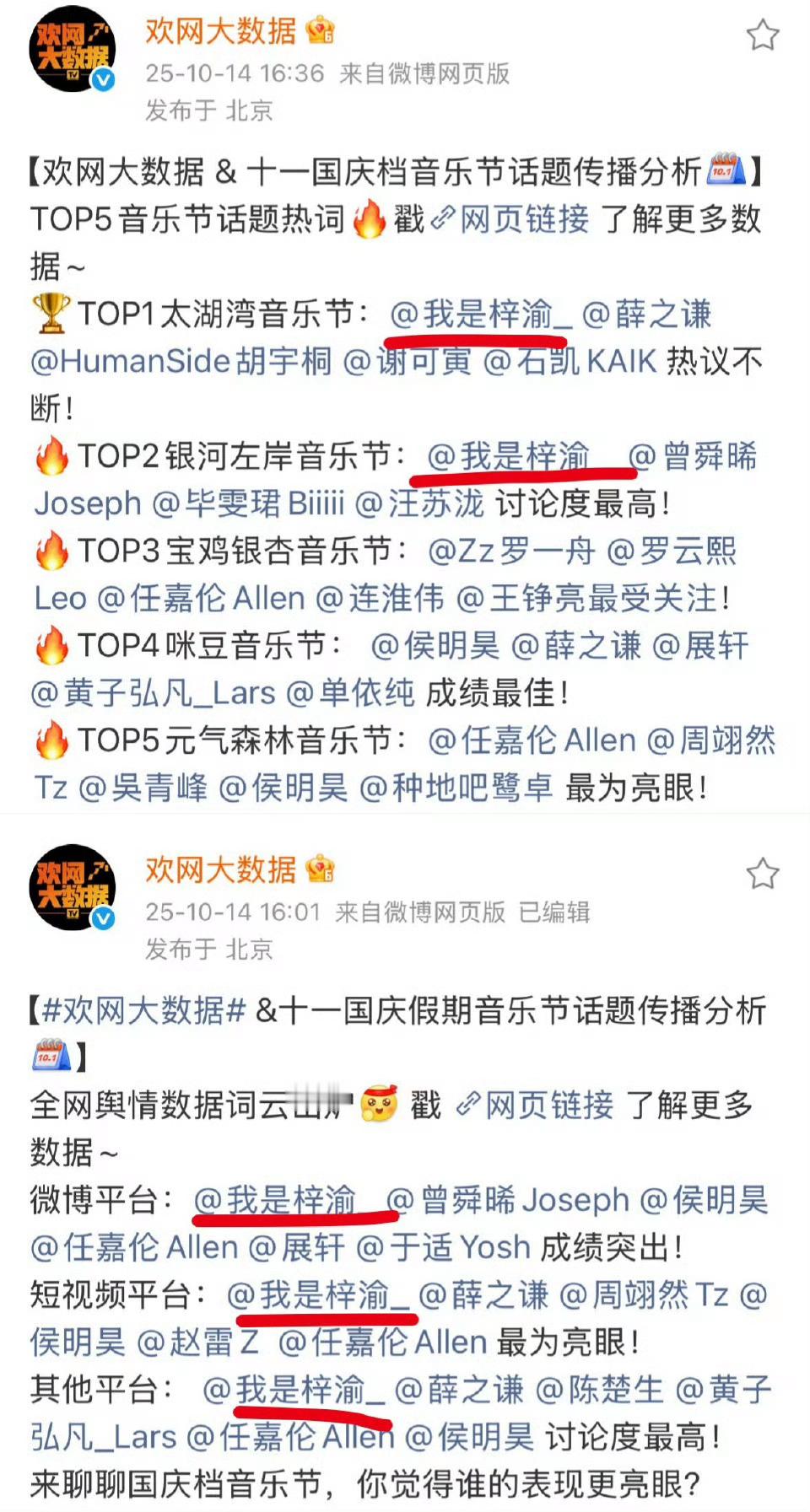 梓渝国庆档音乐节盘点全网话题TOP梓渝三场音乐节均为话题顶流,出现就是大出圈,各项都是top1[送花花] ​​​