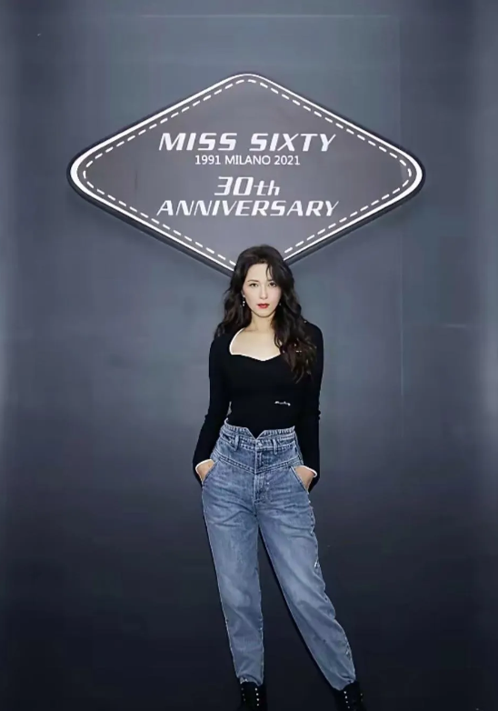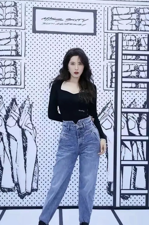 曾黎又凭穿搭出圈!牛仔裤脚利落塞进马丁靴,腿线瞬间被拉长,大长腿优势拉满,完美身材比例一目了然,帅美又吸睛 。