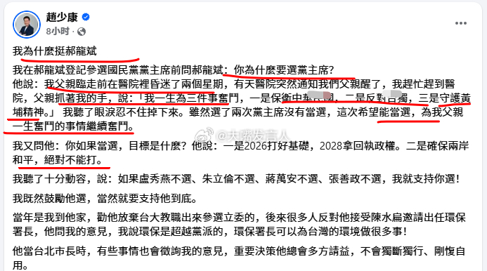 黎少康转述郝龙斌为什么想当蓝营魁首,说是郝要继续郝父的事业[哈哈][哈哈]