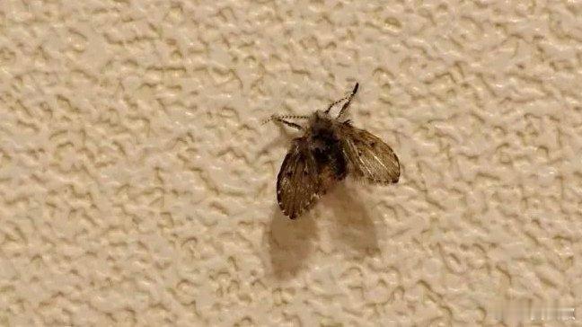 它叫蛾蚋。喜欢阴暗潮湿的环境,常出现在卫生间下水道、洗手盆排水口、地漏等处。以腐烂的有机物为食,下水道中的污垢、毛发、食物残渣等是其主要食物来源。