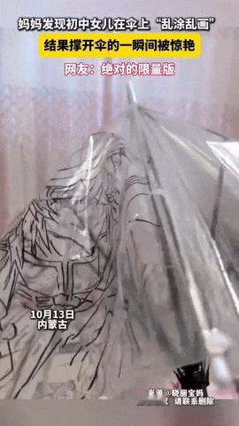 惊艳,女孩在雨伞上涂鸦,惊艳了全场。 这是一把能勾人心魂的雨伞 拿去学校绝对卖爆 这哪是雨伞,分明藏着女孩对规划的梦想 每个孩子心里都住着一个小小魔法师, 你给他一支笔,他就能变出整个宇宙。 那把惊艳全场的雨伞 最初可能只是角落的涂鸦。 有远见的父母,要做孩子梦想的孩子的守护者 如果父母当初说别弄脏伞 我们就永远看不到撑开时的惊叹。 尊重孩子的爱 就是保护他们眼里那束光。 谁知道今天伞上的涂鸦 会不会是明天时装周的设计草图呢? 给孩子的热爱留一片天 他们终将还你整片星空 女孩在伞上画画 撑开伞的瞬间被惊艳