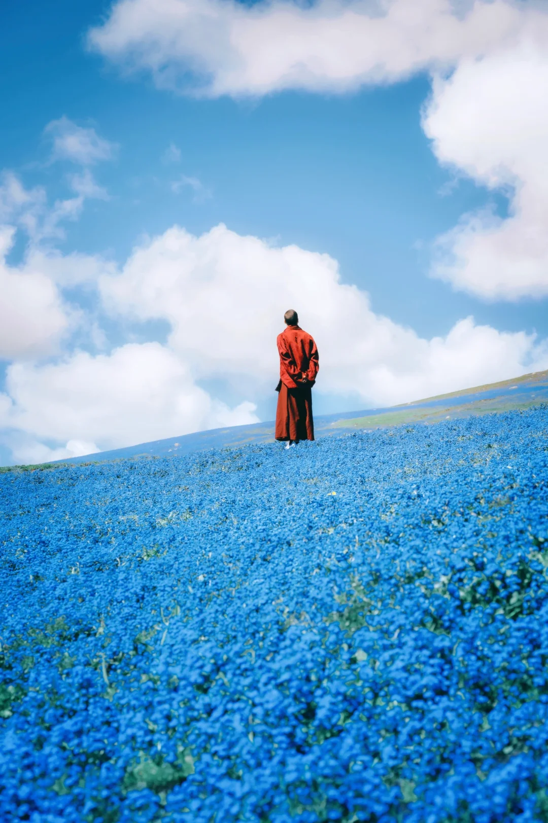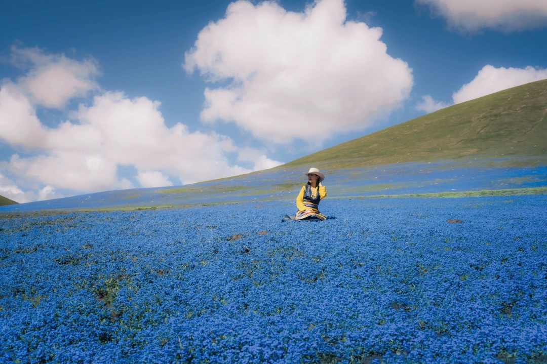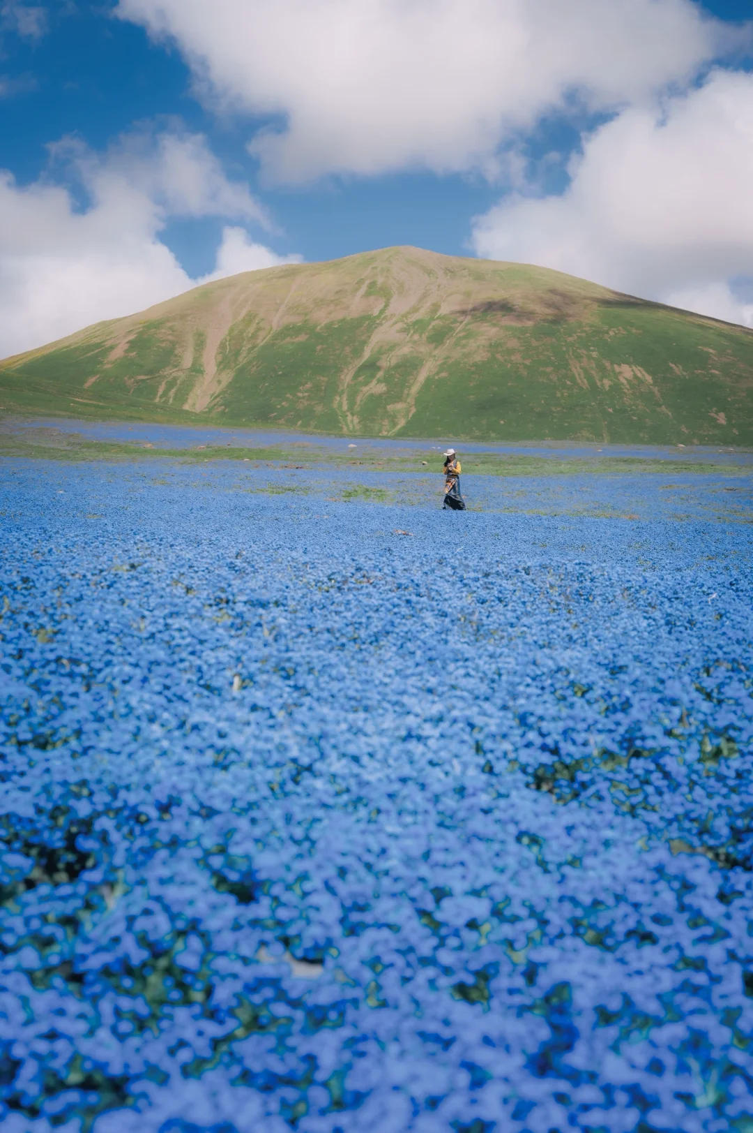 2,我见过很多川西的花海,都从来没有石渠这样的效果,美到不真实的程度。就像置身于一片蓝色海洋里,躺在花海里,仿佛做了一个蓝色的梦境。