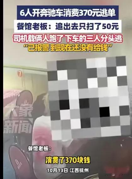 江西抚州,6个人开着奔驰来吃饭,一共需要支付370元,他们吃饱喝足,竟然光明正大地离开,没人付款,店主追出去,下来三个人,竟然不是付款,而是分头逃跑,最后有人付了50元,开车的那个人,就一脚油门,开着车也走了。 余先生看到这6个人的所作所为,真的是又好笑又气愤,他做餐饮那么久以来,还真没有遇到过这样的事,他有见过偷偷逃单的,但还真没有见过当着面逃单的,真是太令他生气了。 说起这个6个人,余先生就感到很无奈,当时这6个人是开着奔驰车来吃饭的,余先生开店做生意,看到这6个人开着奔驰进来。 他就猜想应该6个人要不就是谈业务的,要不就是亲朋好友聚餐,不管是哪个,能开得起奔驰车的,他觉得这6个人经济条件应该不错。 余先生做餐饮就喜欢这样的人,就赶紧热情招待他们,希望他们能够成为回头客,毕竟以他的判断,他们肯定是会点不少菜的。 让他有些意外的是,这6个人点了菜之后,余先生算了算,只有300来块钱,他们吃的并不是很多。 不过余先生的店,菜品的价钱本来就比较优惠,点这些菜对于一般的客人来说,也是够吃的,他并没有将这件事放在心上,而是一如既往地保持热情,让他们吃好喝好,他们有什么需求也会马上满足。 眼看这6个人,相聚在一起,推杯换盏,在餐桌上谈笑风生,一看这几个人就混得不错,守着一家小店的余先生反倒有些羡慕他们了。 可接下来发生的事情,让余先生万万没有想到。 这6个人吃饱喝足之后,竟然没有人过来付款,当时余先生也在忙,也没有太在意这件事情,毕竟6个人花费的钱也不是很多,才300来块钱。 只见这6个人吃饱喝足,还在那里闲聊,有人聊着聊着就先行离开了,人陆陆续续地离开,余先生感觉不对劲,但又说不上哪里不对劲。 他从头到尾都没有想过,这6个人会逃单,毕竟他们开着奔驰车来的,衣着也有品味,不至于没钱支付这370元。 可余先生想错了,这6个人就是要逃单,而且还是当着他的面要逃单,他们就当着余先生的面陆陆续续地走出店外。 一走出去,他们就迅速上了奔驰车,准备逃离,余先生这才发觉不对劲,就赶紧追了出来。 结果发现,有三个人从车上下来,余先生松了一口气,以为他们是忘记,然后现在下车付款的,可他又想错了。 只见那三个人下车之后,拔腿就跑,而且是分头逃跑,余先生不知道追赶哪个,就赶紧拦住奔驰车。 这时有人付款了,但是他们搜完全身只能付50元。 看到他们开着奔驰车,6个人只凑出50元来付款,余先生气得笑了,他在想他们也不至于这么穷吧! 可他们容不得余先生多想,开车的人,一脚油门就开着车逃跑了。 370元,6个人,还开着奔驰,居然只支付了50元,看着奔驰车远离的背影,余先生气得直跺脚。 遇到这样的事,余先生感到太无奈了,他似乎能感觉到,这6个人并非不想付款,而是真的没有钱,不然也不会只付50元。 这就让余先生想不通了,能开得起奔驰车,怎么就会没有钱呢? 并且,这6个人也太明目张胆了,竟然当着余先生的面,光明正大地逃跑,余先生不甘心,还是将他们的所作所为发出来,让大家看看这几个人的行为。 那么如何认定这6个人的行为呢? 首先,不管是他们哪一个人组织这场饭局,只要他们进店吃饭,每一个人和店家都构成合同关系。 《民法典》第509条规定:当事人应当按照约定全面履行自己的义务;当事人应当遵循诚信原则,根据合同的性质、目的和交易习惯履行通知、协助、保密等义务。 他们吃完饭之后,不管是不是请客的人,都有义务支付饭钱。 其次,370元的饭菜钱,他们只支付50元,他们的行为显然是违约行为。 《民法典》第577条规定:当事人一方不履行合同义务或者履行合同义务不符合约定的,应当承担继续履行、采取补救措施或者赔偿损失等违约责任。 余先生开个店也不容易,可能除掉人工费租金,也挣不了多少钱,现在他搭进去了320元,他可以继续追究那6个人的责任,要求他们支付剩下的320元。 总的来说,如果这6个人不愿意支付剩下的320元,他们的行为就构成了强拿硬要的违法行为。 《治安管理处罚法》第26条规定:有强拿硬要行为的,处五日以上十日以下拘留,可以并处五百元以下罚款:情节较重的,处十日以上十五日以下拘留,可以并处一千元以下罚款。 如果因为这320元,他们受到行政处罚,这就不值得了,他们还是应该付钱。 那么你如何看待他们逃单的行为呢?