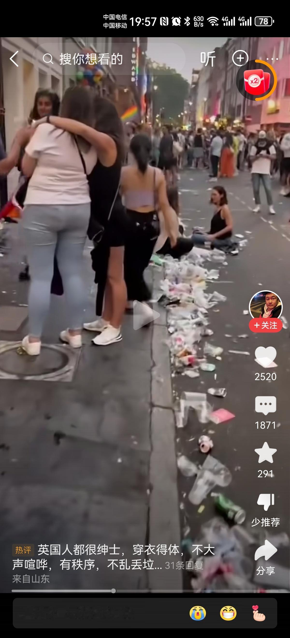看看, 这就是伦敦的街头。 看到此景, 想起了曾经听到的评价。 没去之前说西方有多美, 去了就会知道有多差。 没来之前说我们伟大的祖国有多差, 来了就会知道有多美。 为我们伟大的世界上最安全的祖国点赞[赞][赞][赞]