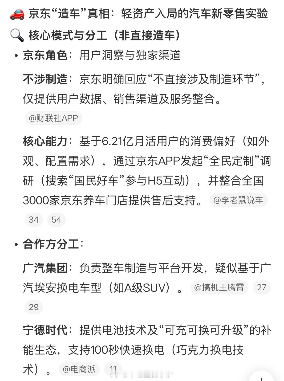 京东入局造车京东这次入局造车,玩的是“资源拼图”新思路。不碰生产线,而是拉上广