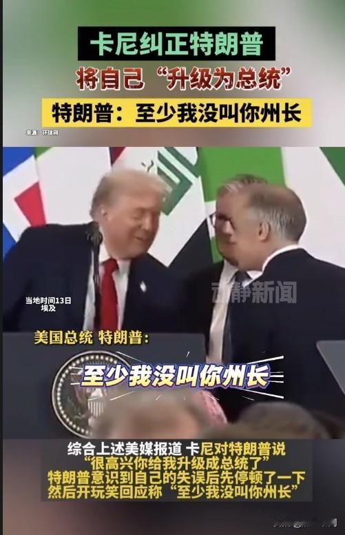 老特又贡献了一天的笑点,明明是加拿大总理却被误认为是总统,还把心里话说出来了,蛮诚实的。 10月13日,美国总统特朗普在“和平峰会”的演讲中把加拿大总理马克·卡尼误称为“总统” 卡尼:很高兴你给我升级成总统了 特朗普笑着说:至少我没叫你州长 有网友评价:每次刷到他,都能给我逗乐。 老特反应还是可以的,心心念念啊。 难怪美国那么多人喜欢他