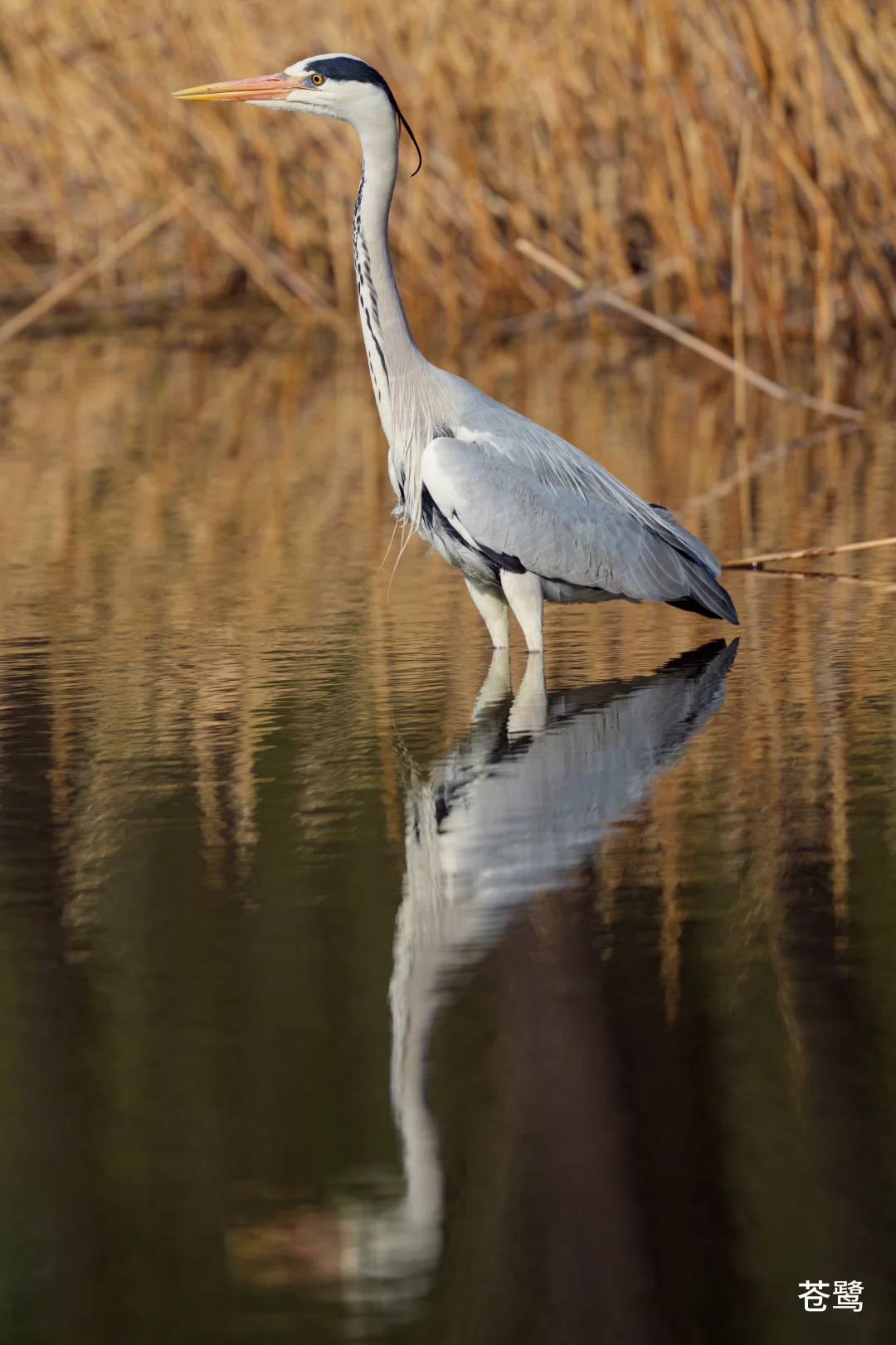 苍鹭,广泛分布于从南到北的各种水边。脖子伸长的时候非常优雅,脖子缩起来的时候又有点猥琐。经常在水边呆愣愣看着水面,然后突然出击抓鱼。一道宽宽的黑色眉纹一直延伸到头顶的几根冠羽。