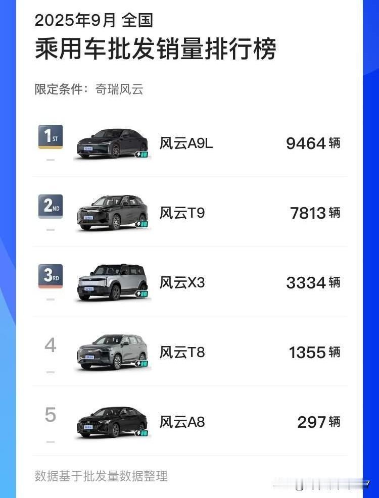 奇瑞主品牌9月销量明细表明,瑞虎5x和瑞虎7依旧是销售主力,这两款车型的销量主要靠出口贡献。探索06 cdm因在英国市场畅销,取得了1.1万的销量佳绩。值得一提的是,瑞虎9X的发布大幅提升了瑞虎9家族的销量,首次突破一万辆。 风云品牌方面,A9L销量接近1万,T9表现也不错,批发量达7813辆。别质疑T9销量的真实性,要知道这款车在海外出口时叫做瑞虎9 phev,是瑞虎家族在海外的旗舰车型,而国内的瑞虎9出口名为Jaecoo J8!