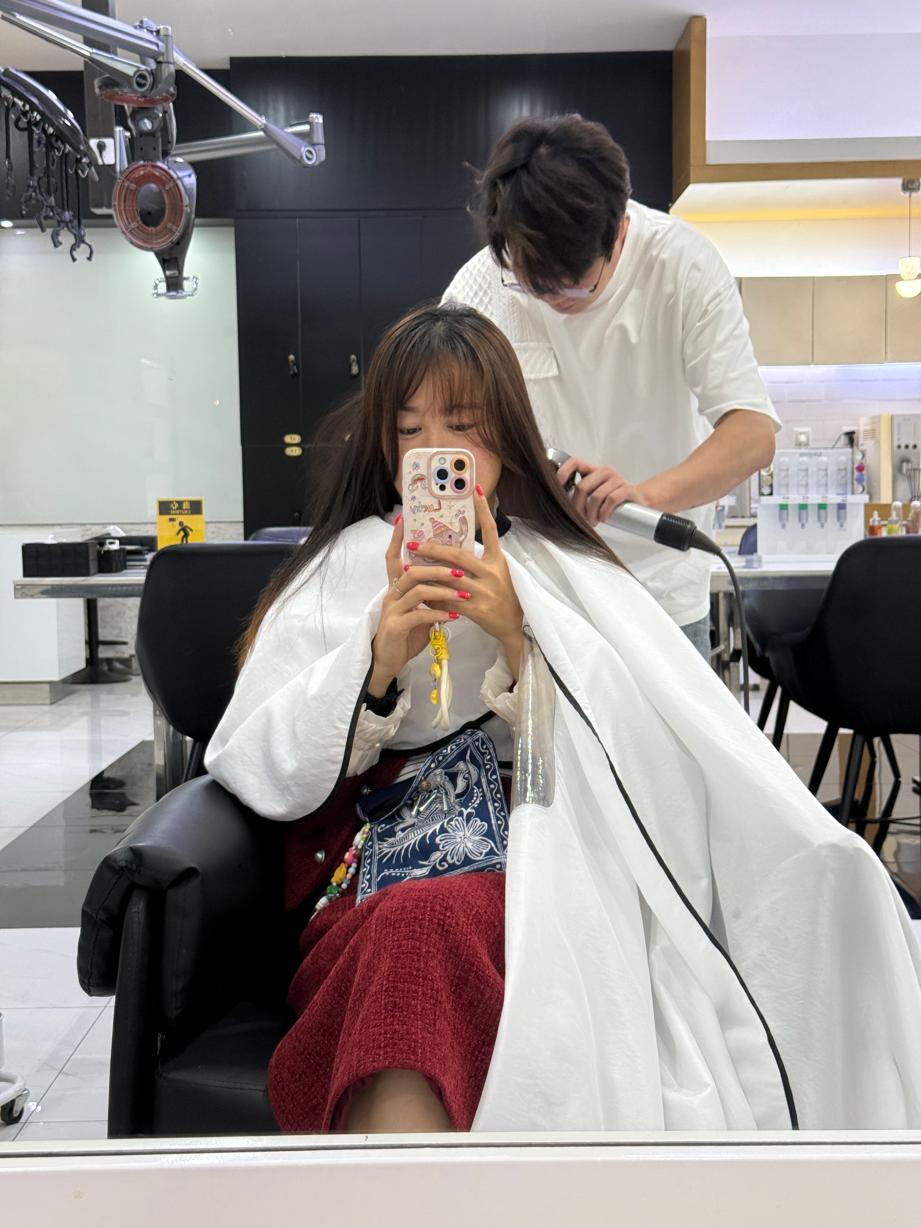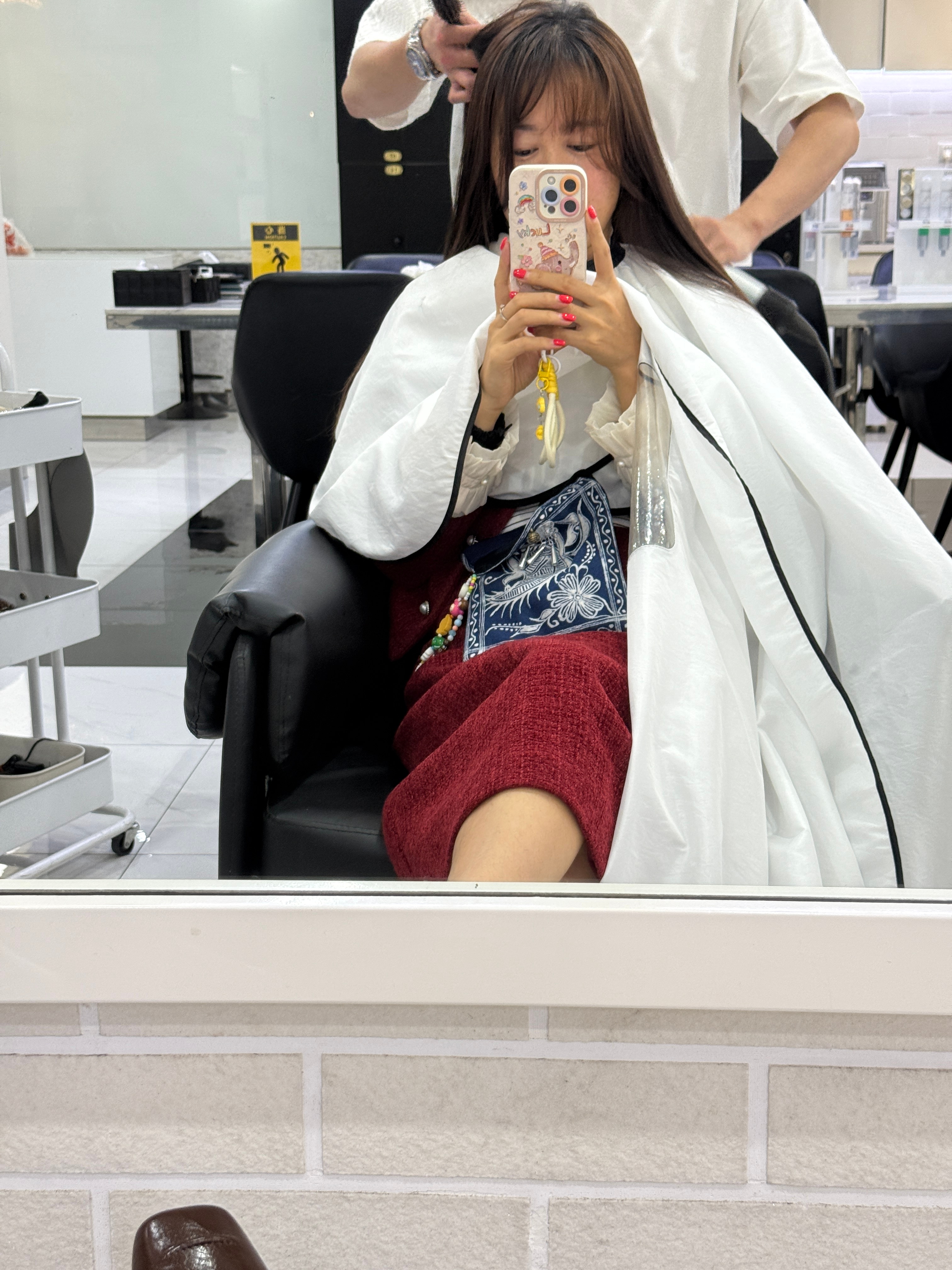 剪个刘海,本来想全部剪一下,结果商场9:00关门,所以只能剪个法式刘海,感觉还是挺适合刘海的吧[允悲]突然发现还有白头发了呢