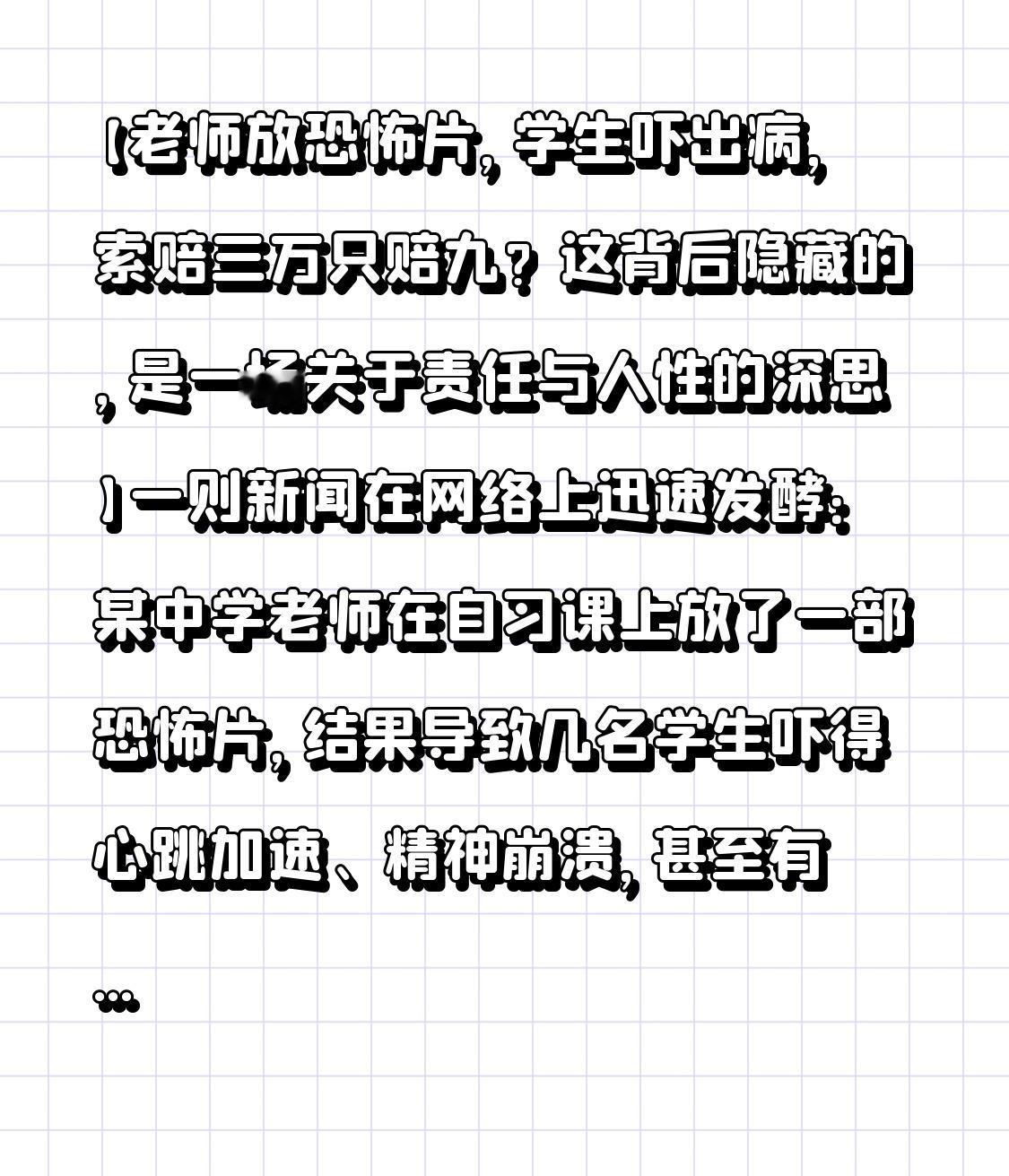 【老师放恐怖片,学生吓出病,索赔三万只赔九?这背后隐藏的,是一场关于责任与人性的